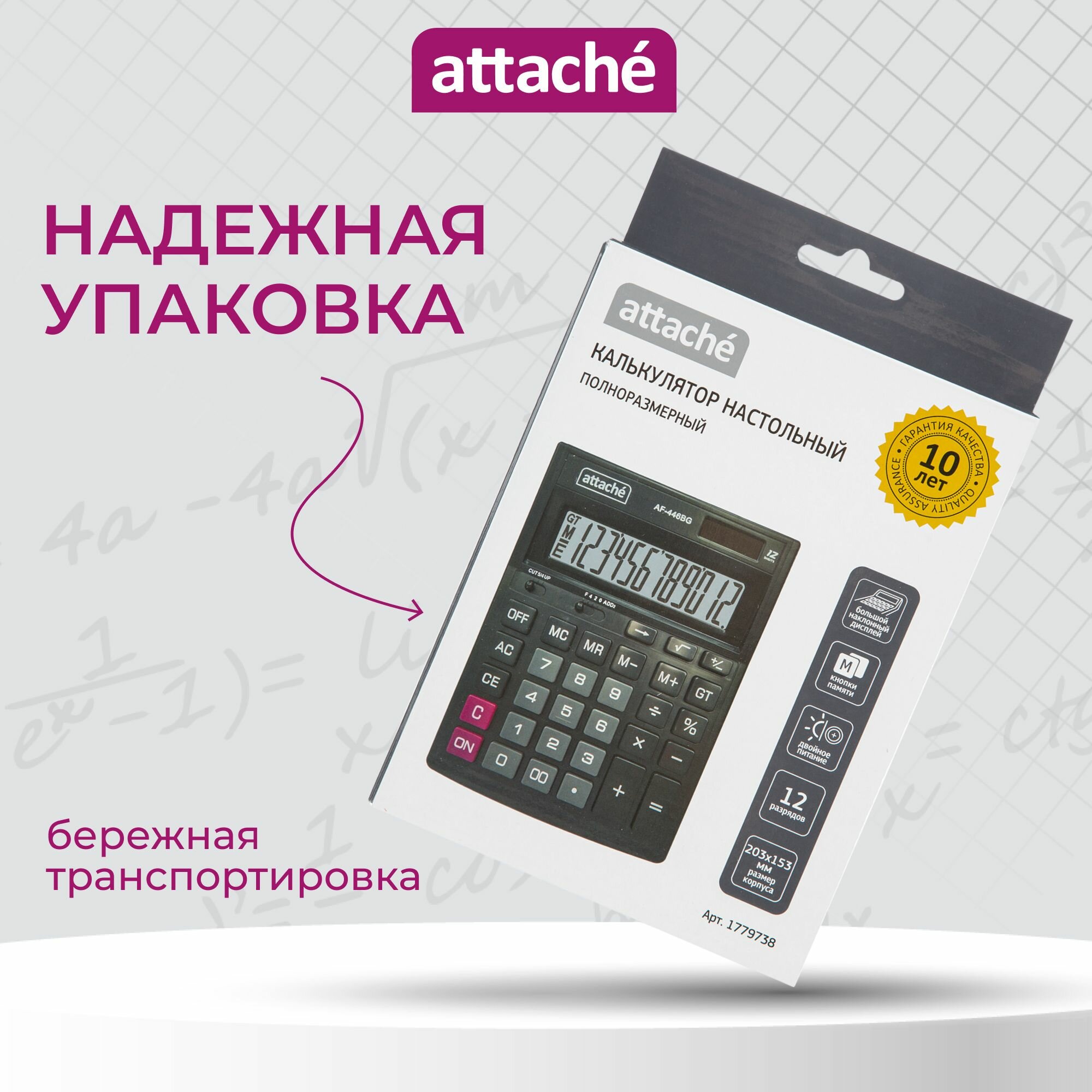 Калькулятор настольный Attache AF-445S, 190x147x41 мм, 12-разрядный