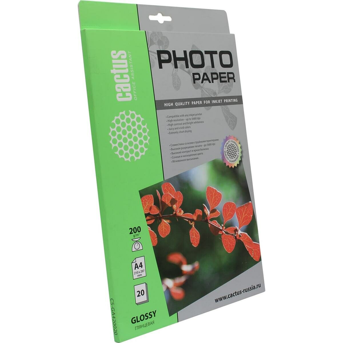 Фотобумага Cactus A4 глянцевая, 200г/м2, 20л, белая для струйной печати CS-GA420020 интересное: