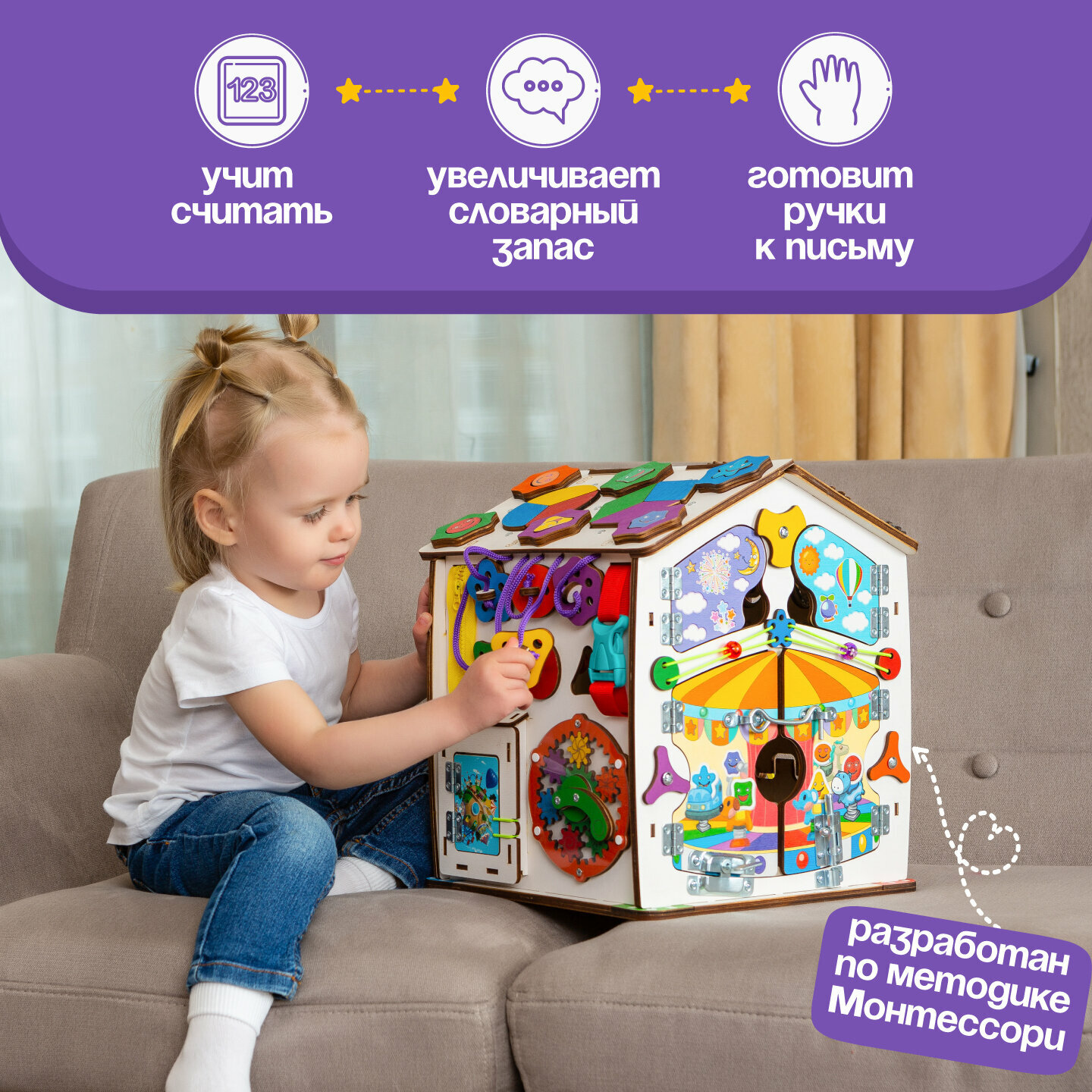 Бизиборд развивающий домик 29х36 см со светом, , развивающая игрушка бизидом