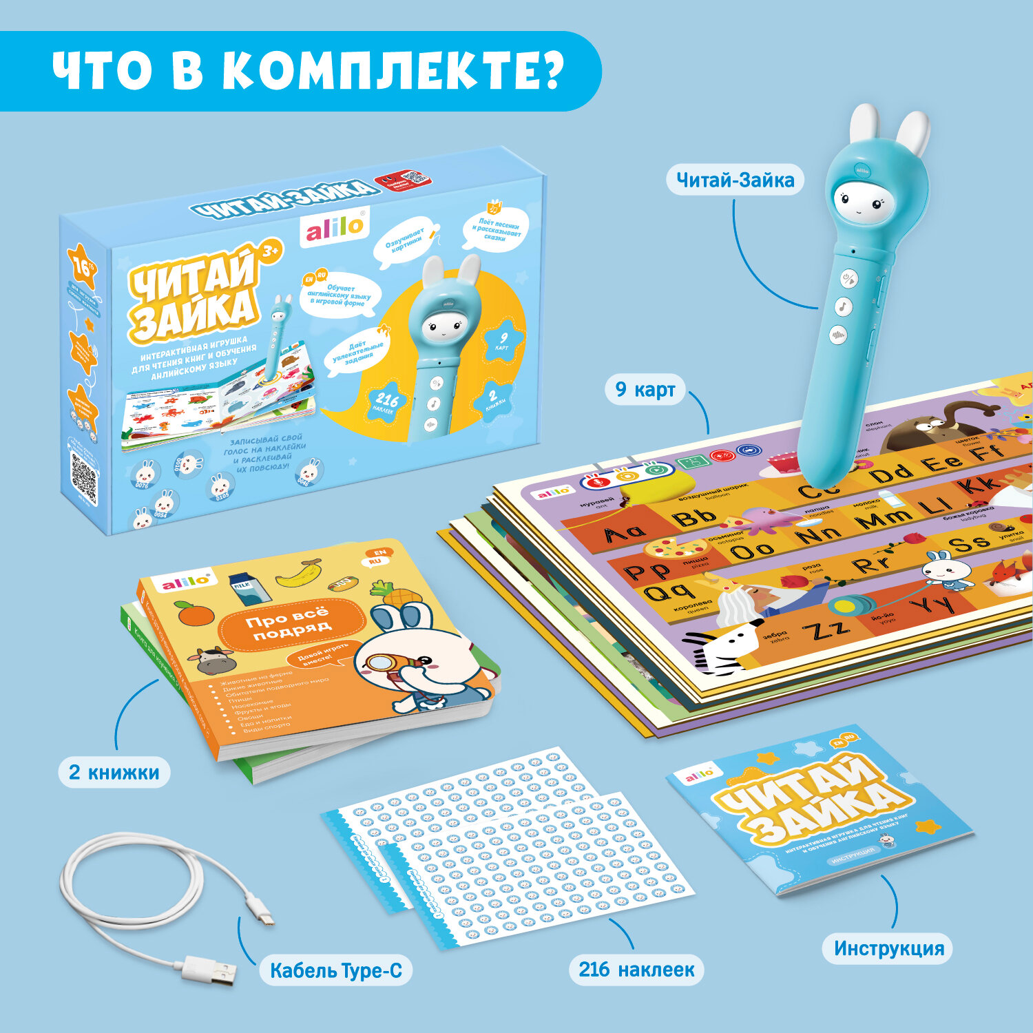 Интерактивный набор alilo Читай-Зайка, 2 книги, 9 карт, 216 записывающих наклеек для детей интересное: