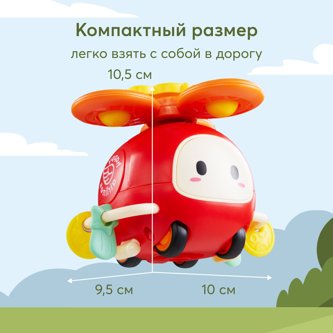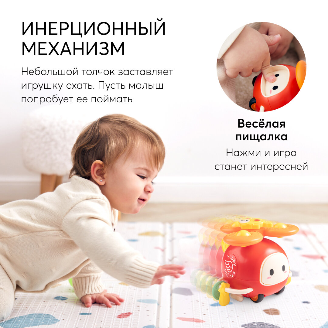 331895 Инерционная многофункциональная развивающая игрушка вертолёт Happy Baby HAPPYCOPTER, звуковые эффекты, красный интересное: