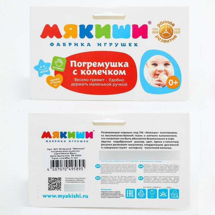 | Дополнительная информация | материал: пластмассовое колечко с разноцветными шариками, плюш, хлопок, синтепух |
