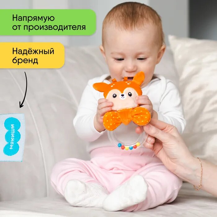 Игрушка погремушка-колечко 'Оленёнок Бемби' (Мякиши) интересное:
