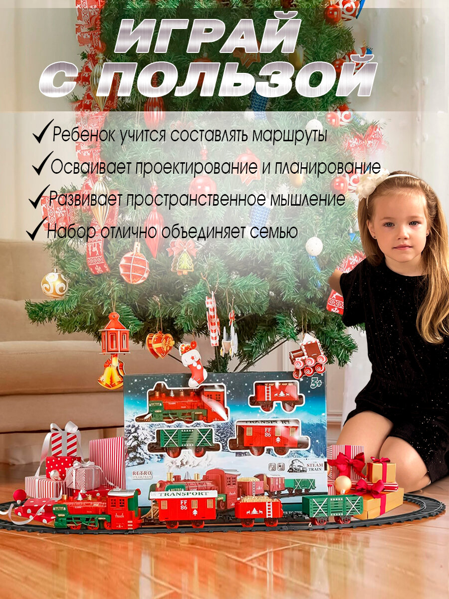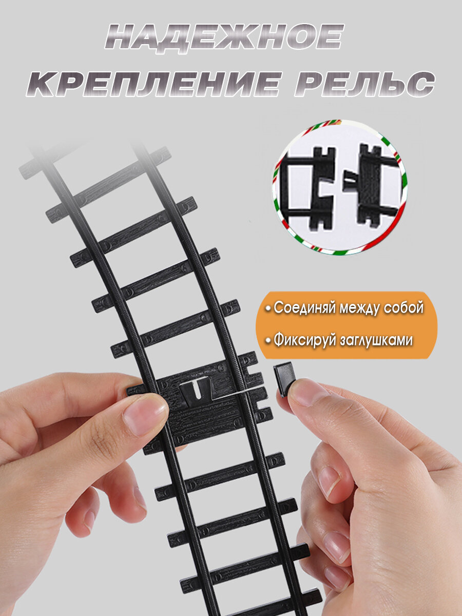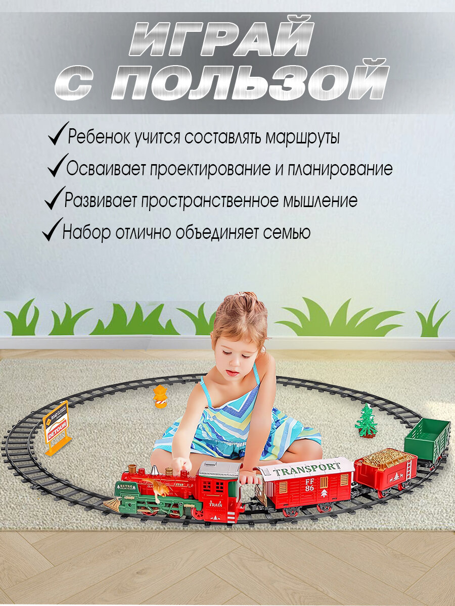 Железная дорога с поездом на батарейках и вагонами с паром, светом и звуком