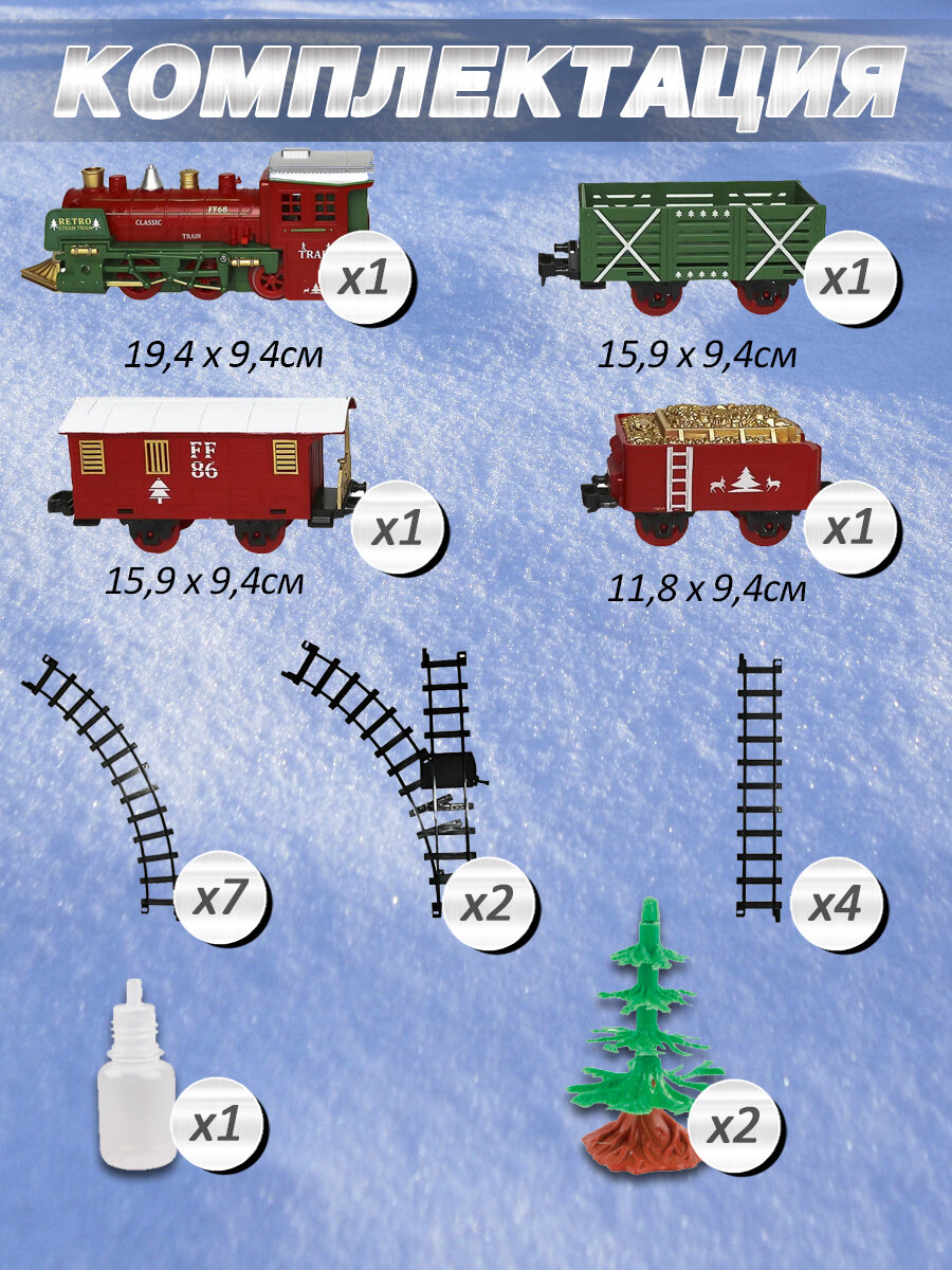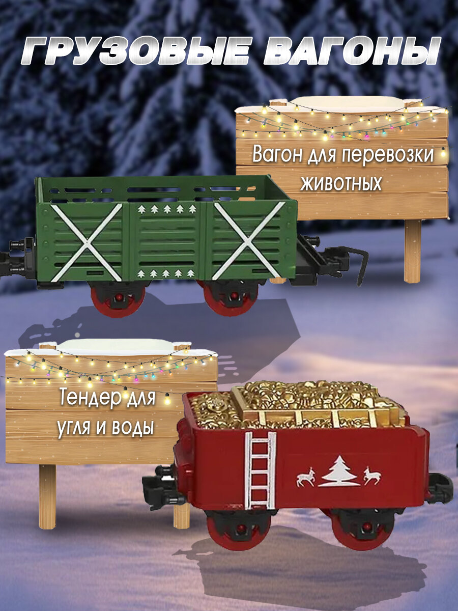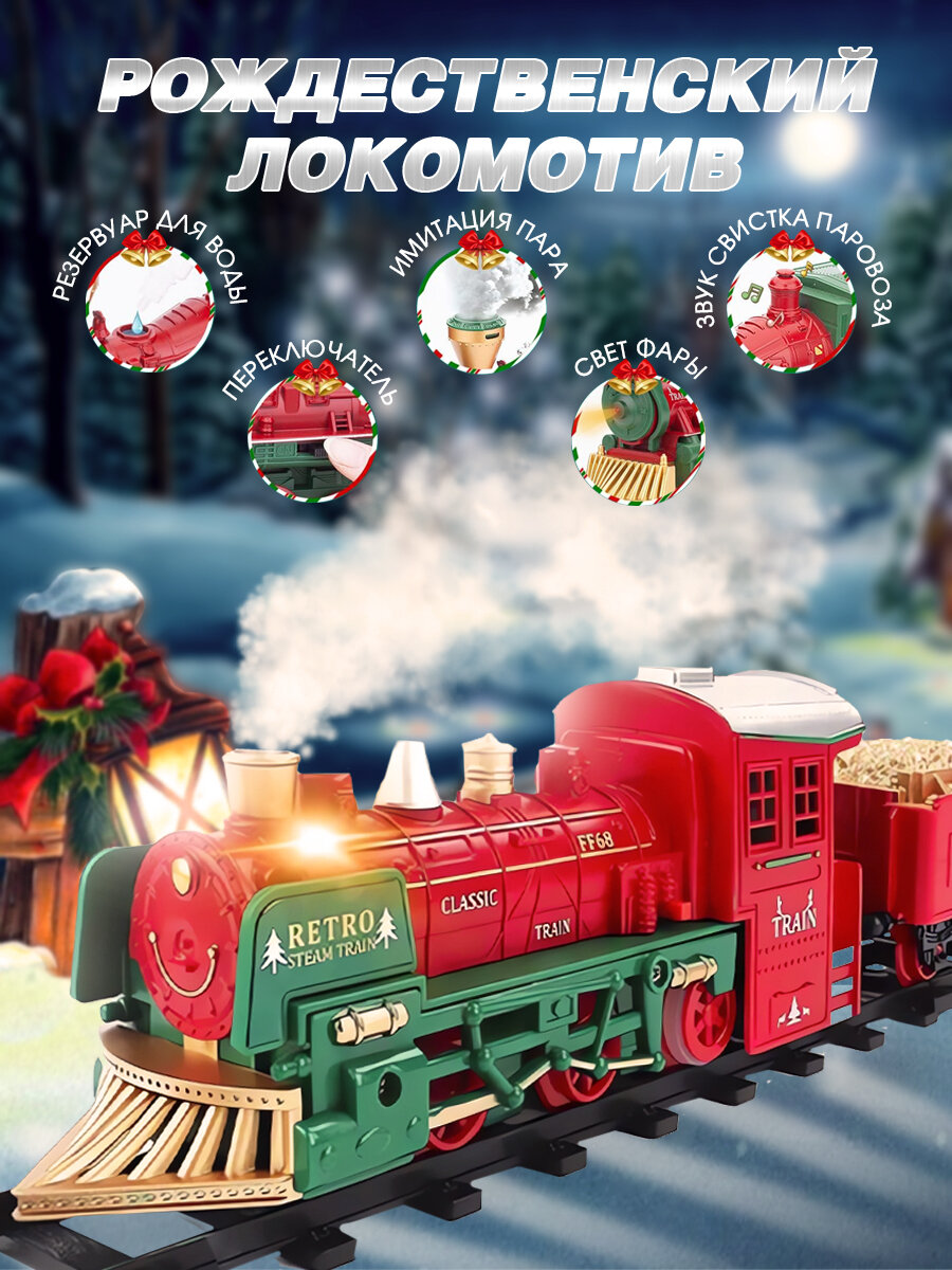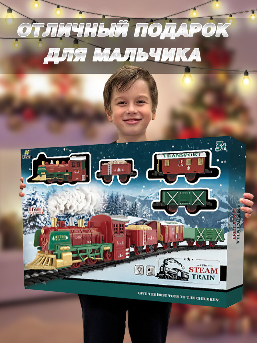 Купить Железная дорога с поездом на батарейках и вагонами со светом, паром и звуком