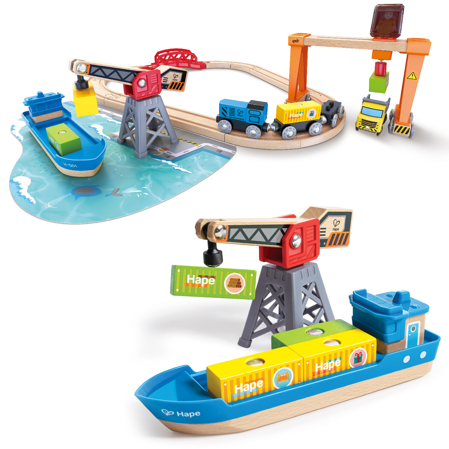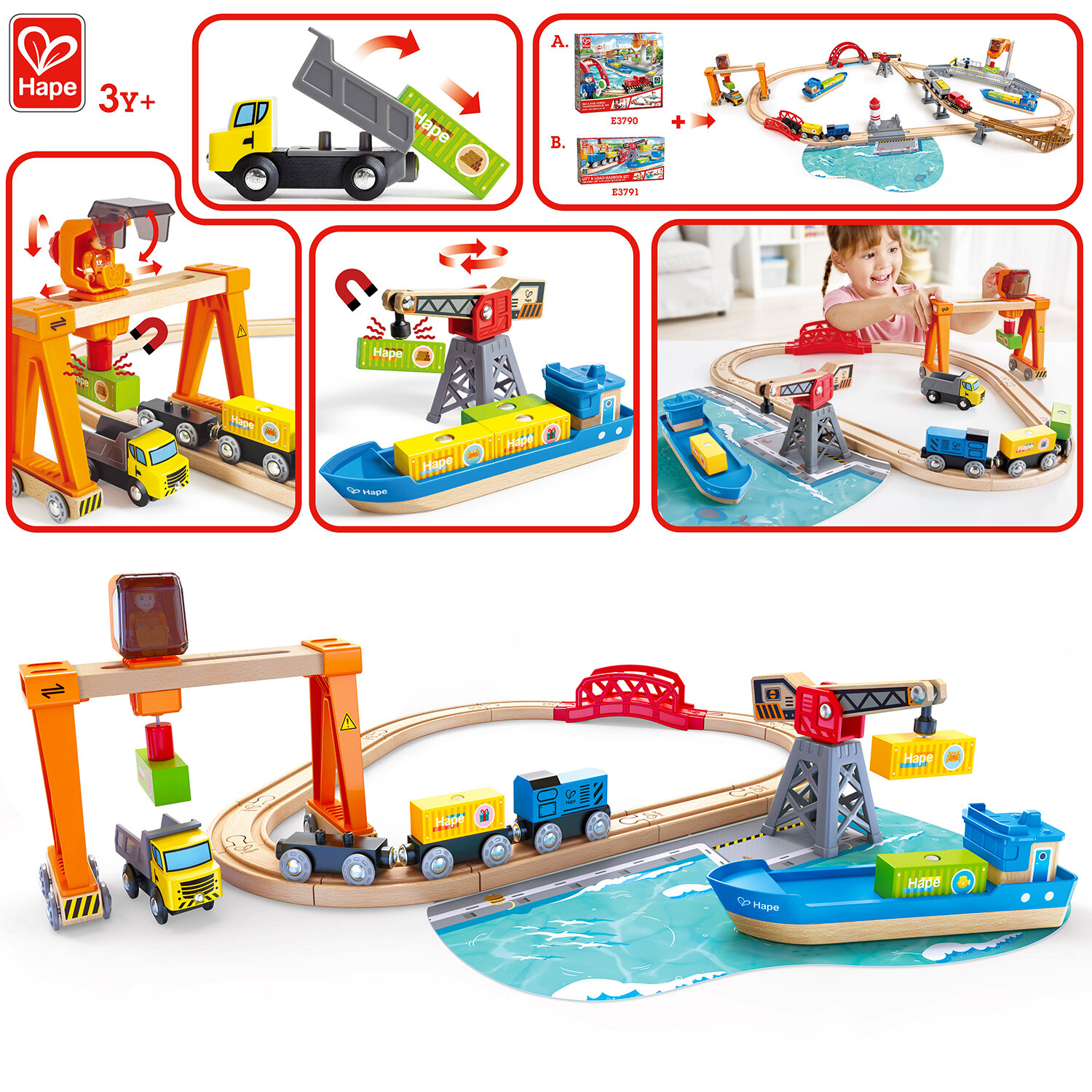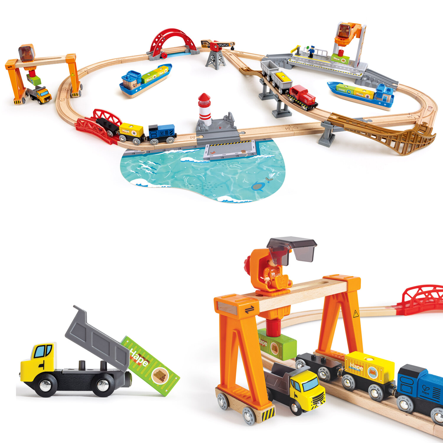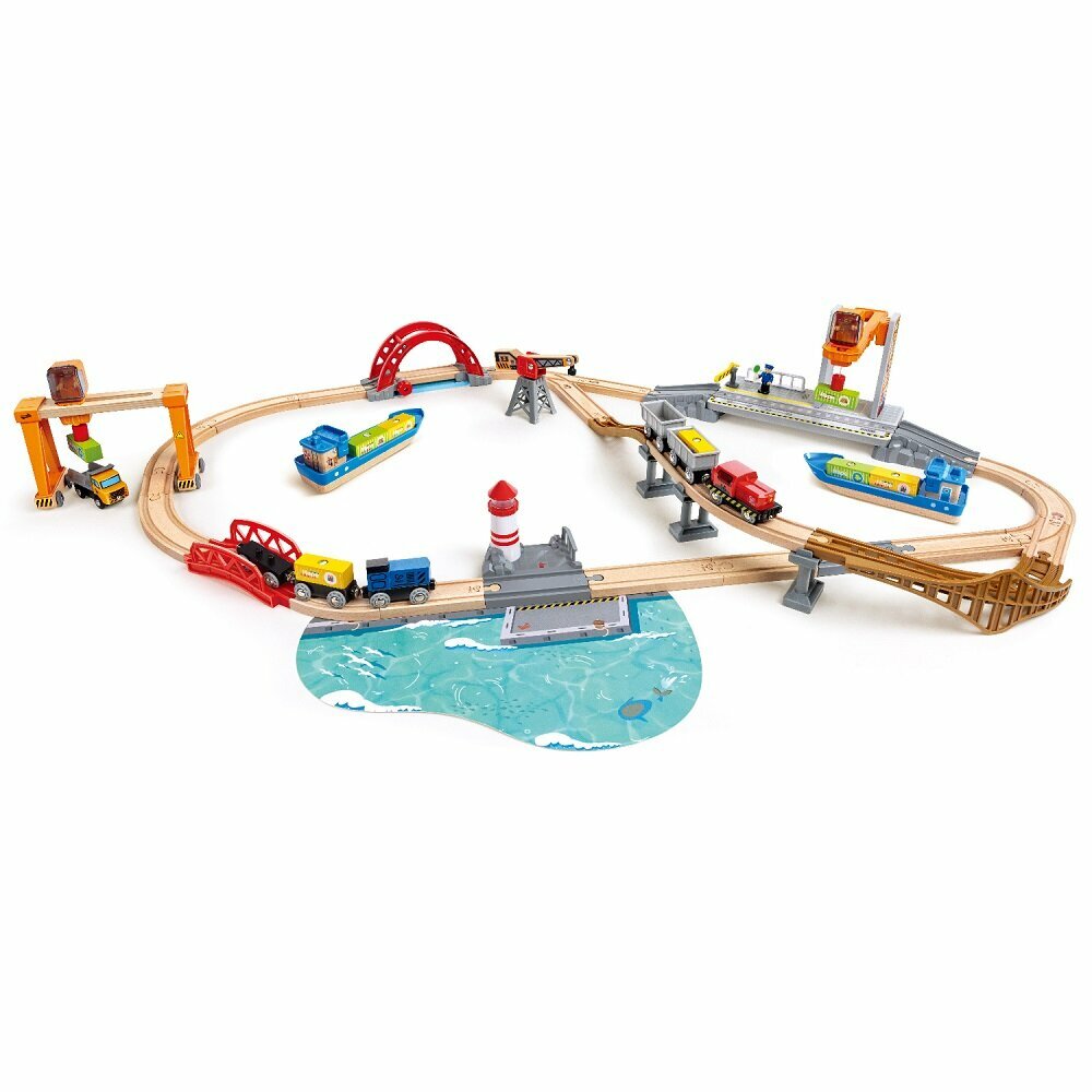 Купить Детская деревянная железная дорога Hape "Подъемно-погрузочная гавань" E3791_HP