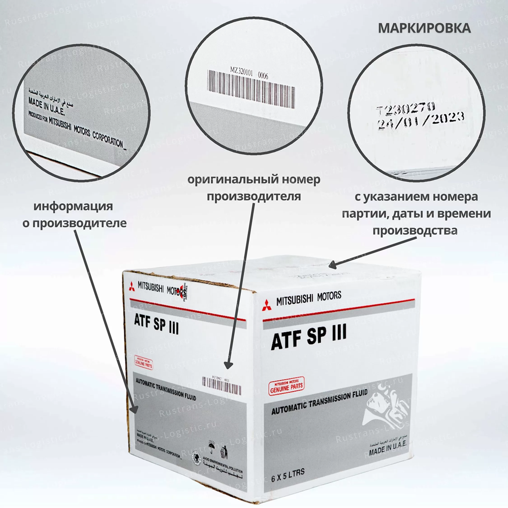 Масло трансмиссионное ATF SP III Mitsubishi (Дубай), (1л) + бирка, масло АТФ АКПП для коробки передач Мицубиси MZ320100, РТЛ