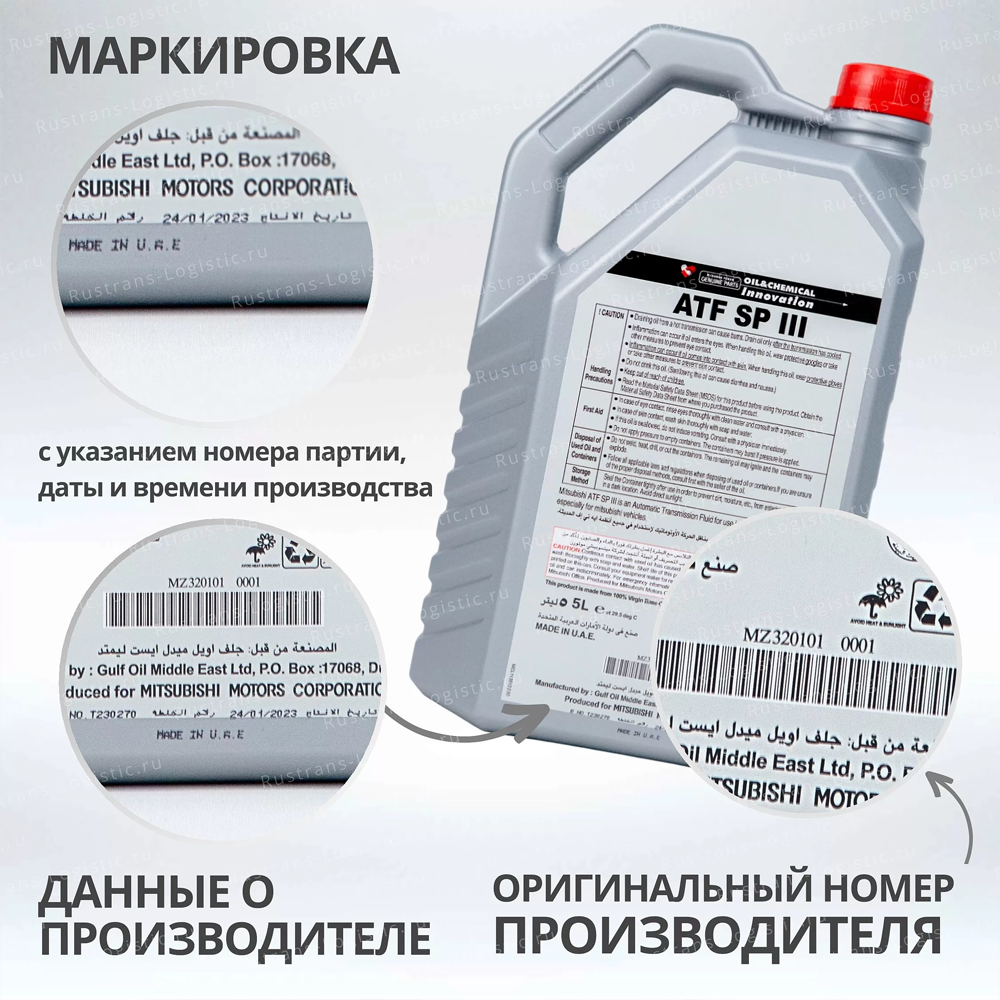 Купить Масло трансмиссионное ATF SP III Mitsubishi (Дубай), (5л) + бирка, масло АТФ АКПП, (масло для коробки передач) Мицубиси MZ320101, РТЛ