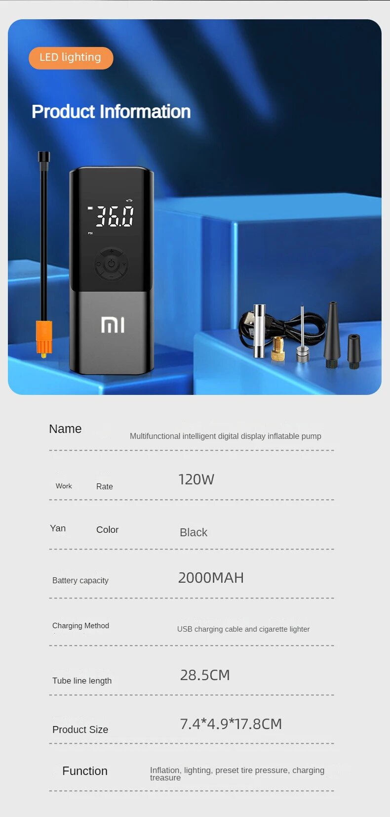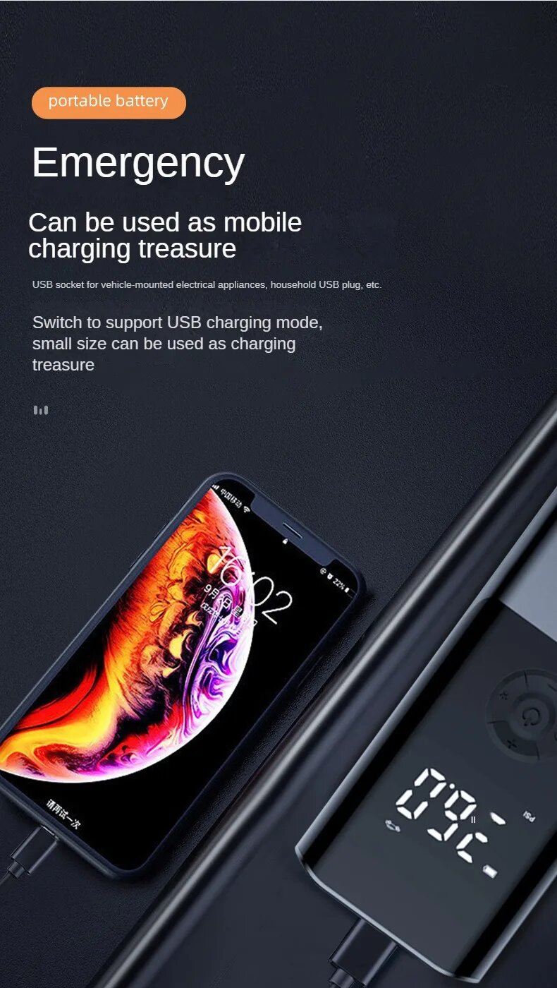 Беспроводной автомобильный компрессор Xiaomi, Car charging Wired