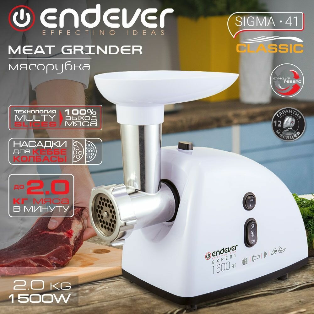 Мясорубка электрическая Endever Sigma-41 / 1500 Вт / до 2 кг/мин / насадки для колбас и кеббе