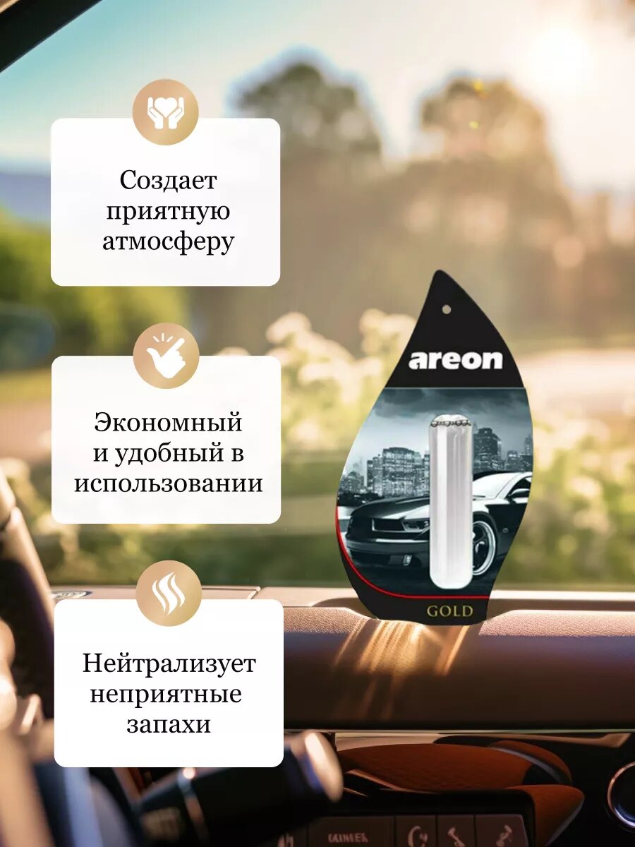 Ароматизатор на зеркало Areon Liquid lux жидкий, Gold, 5 мл 704-LX-01 3 шт