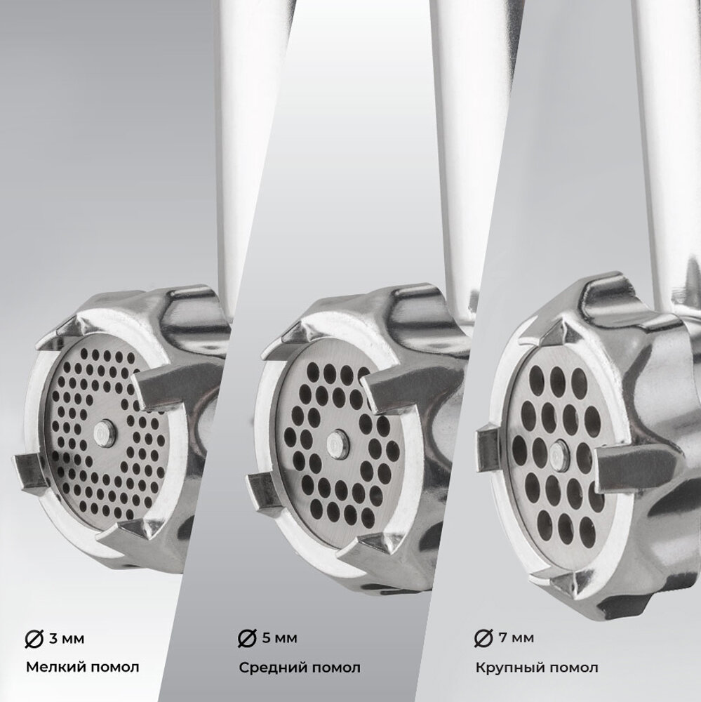 | Отзыв: | Брал по отзывам, не пожалел. В комплекте 3 решётки. Я доволен. Отечественная мясорубка (made in china) накрылась после третьего раза использования, надеюсь с этой будет все норм. |