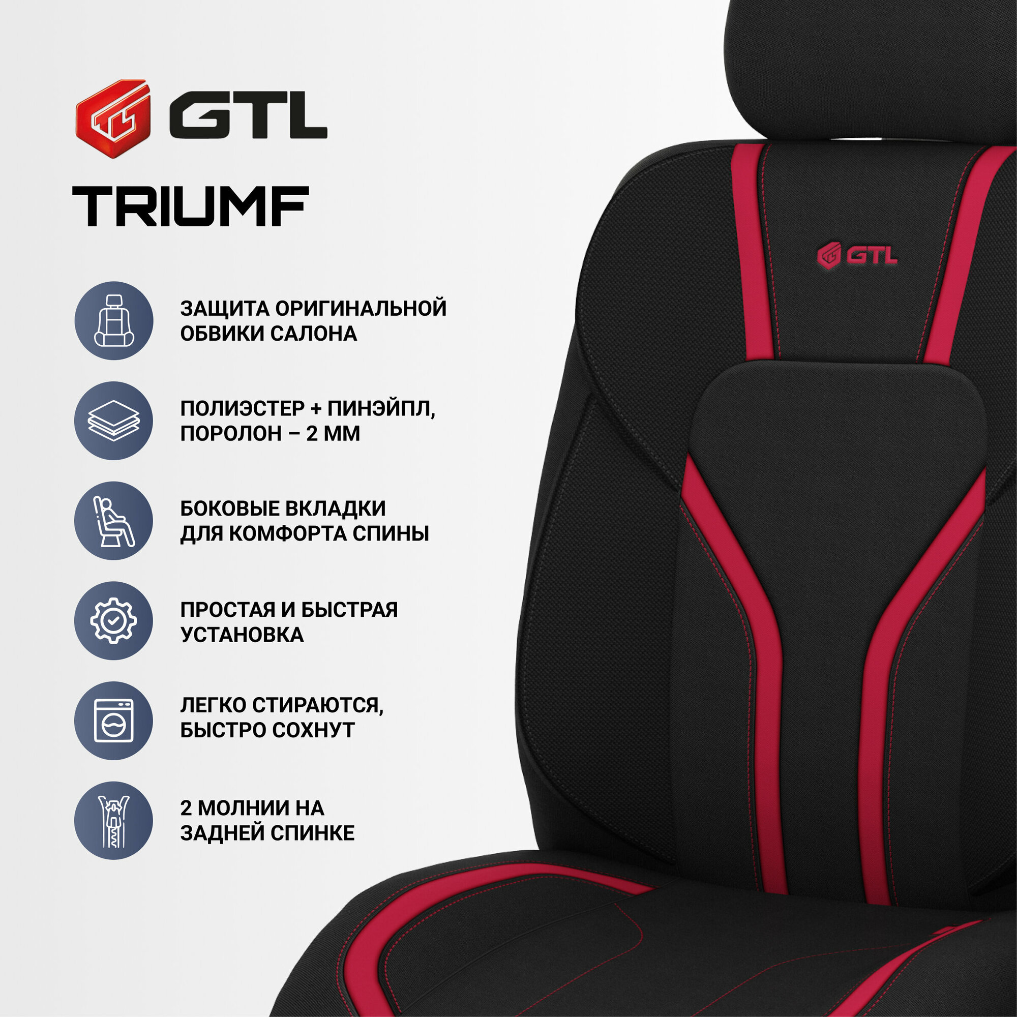Чехлы GTL Triumf (Черно-Красный) с боковыми поддержками, полиэстер + пинэйпл интересное: