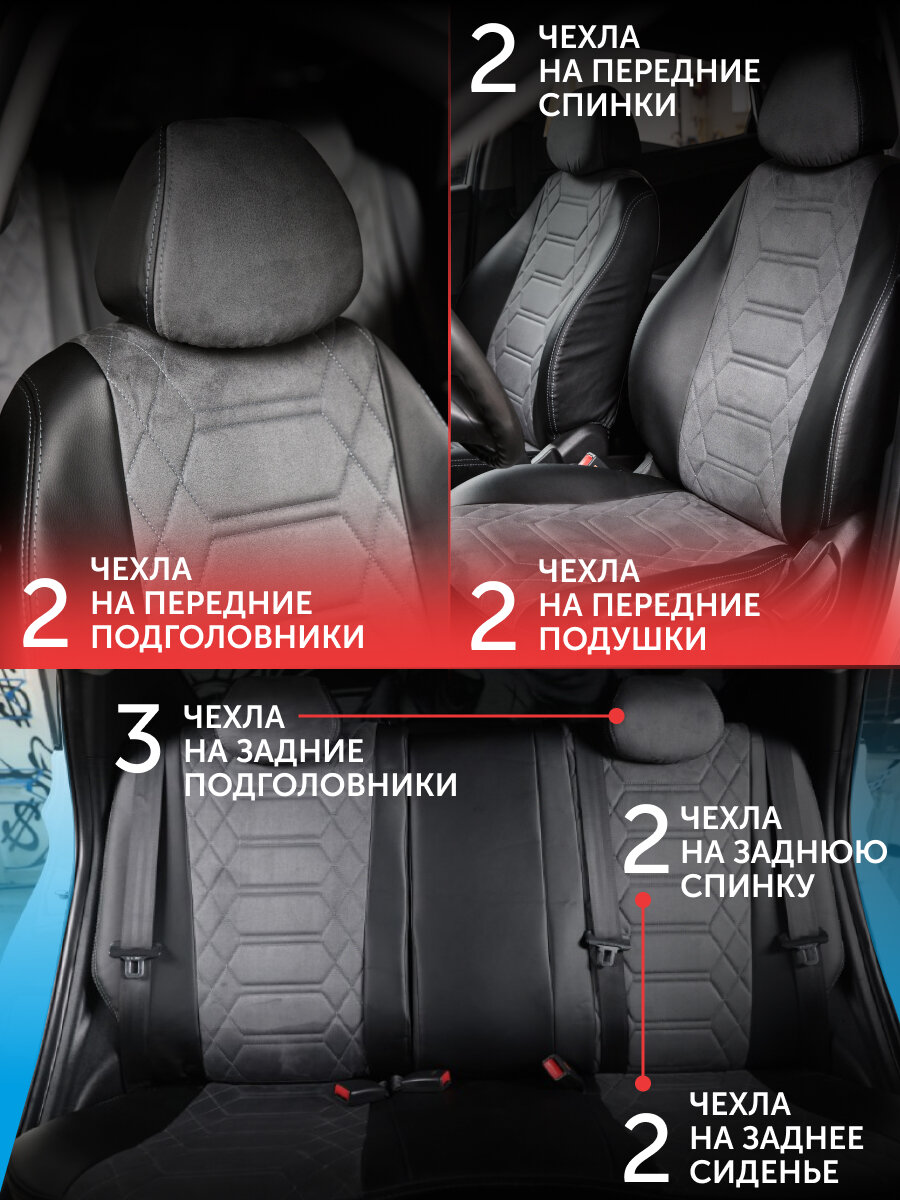 | Подробная комплектация | Cпинки передние 2, сиденья передние 2, спинка задняя большая 1; спинка задняя малая 1, сиденье заднее сплошное 1; подголовники передние 2, подголовники задние 3, крепеж, инструкция |