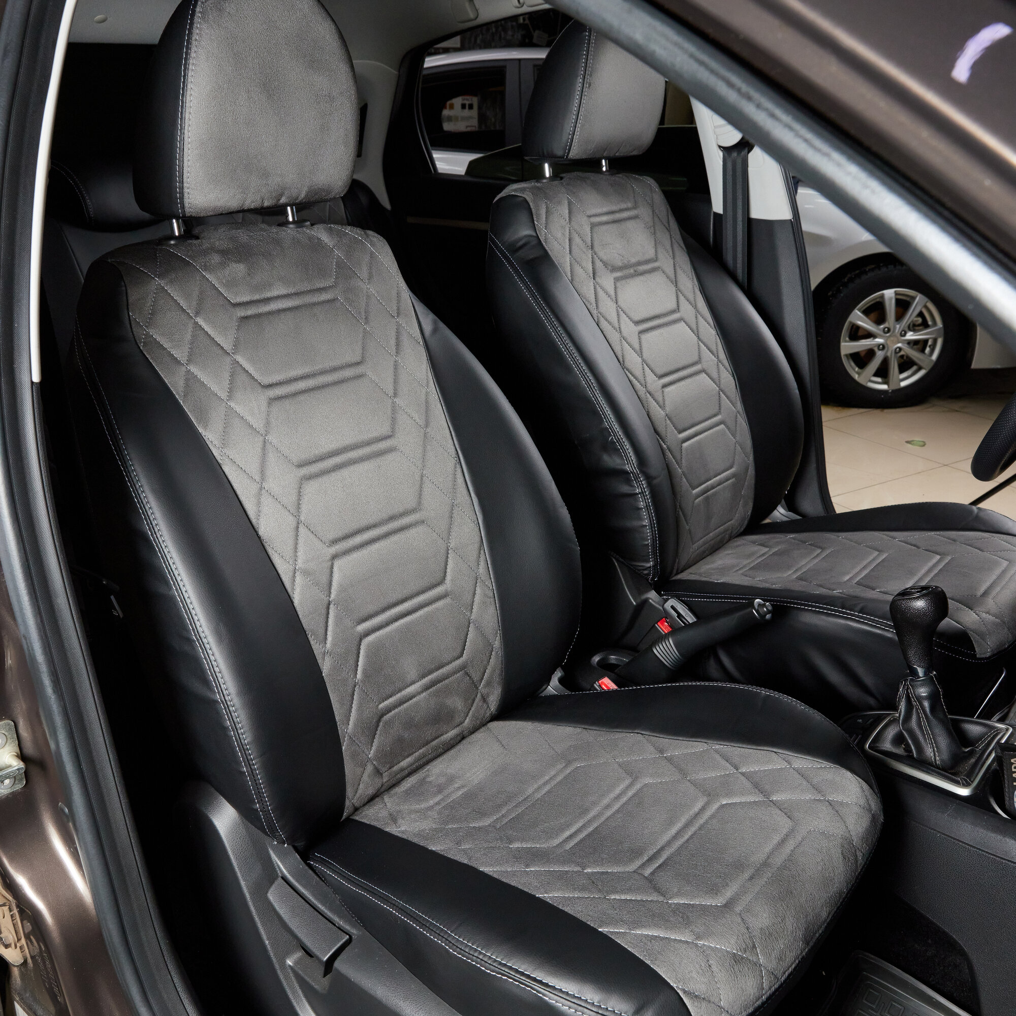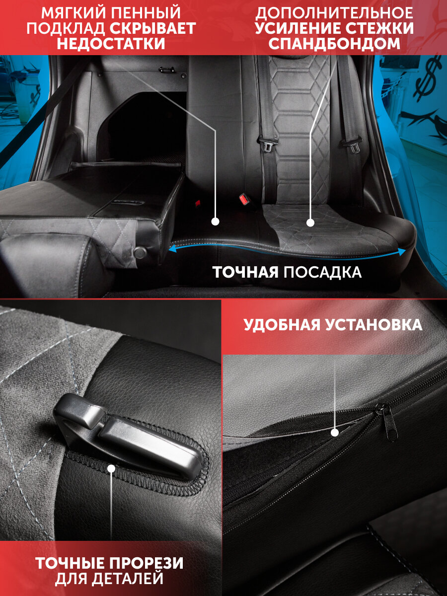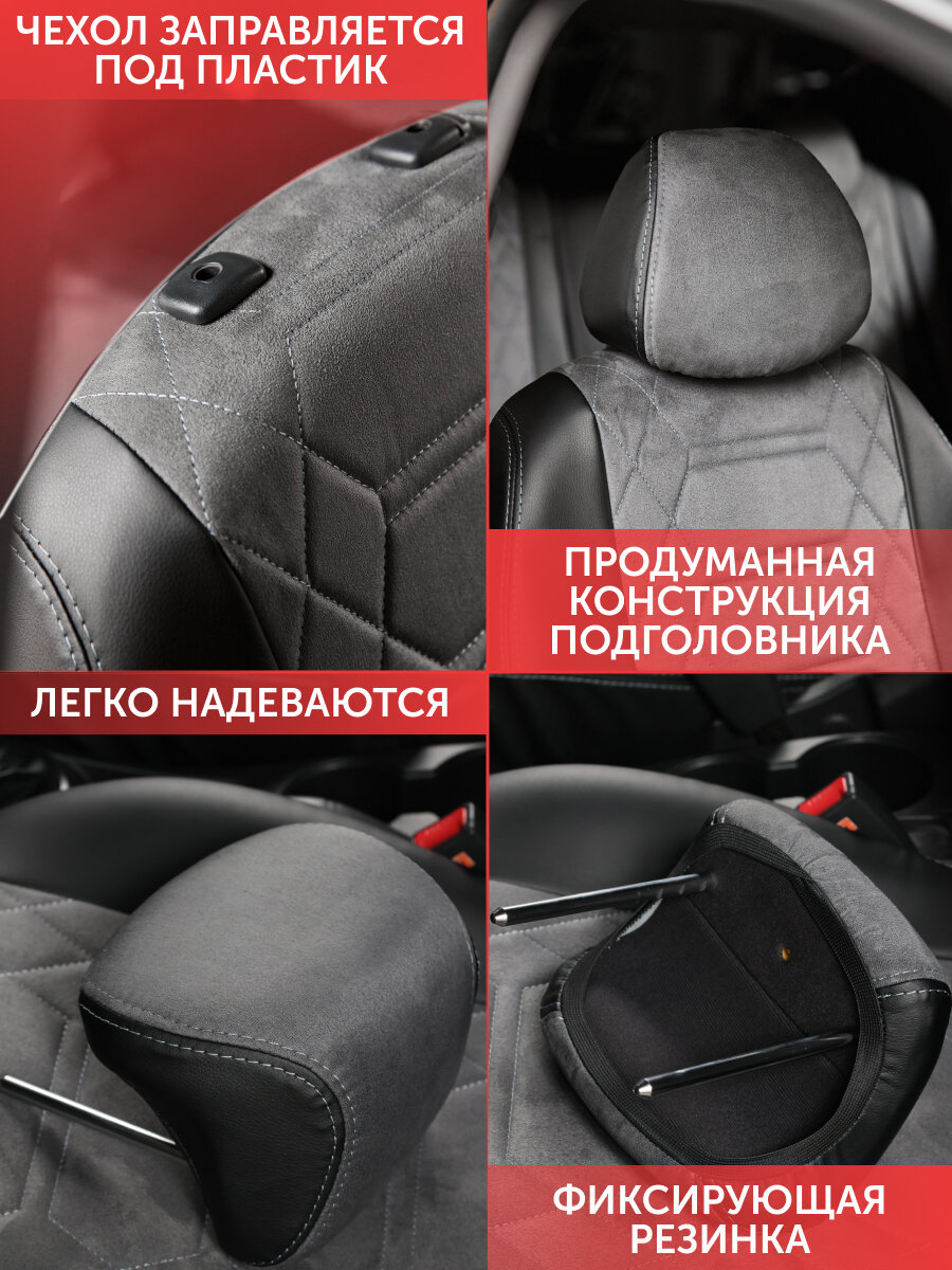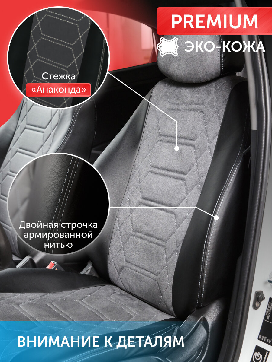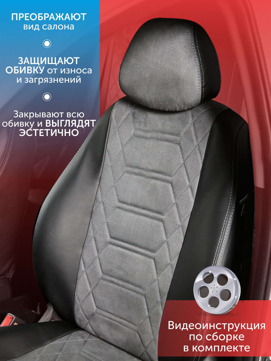 Комплект каркасных чехлов 5D CarFashion Consul Plus, чёрные, отстрочка серая