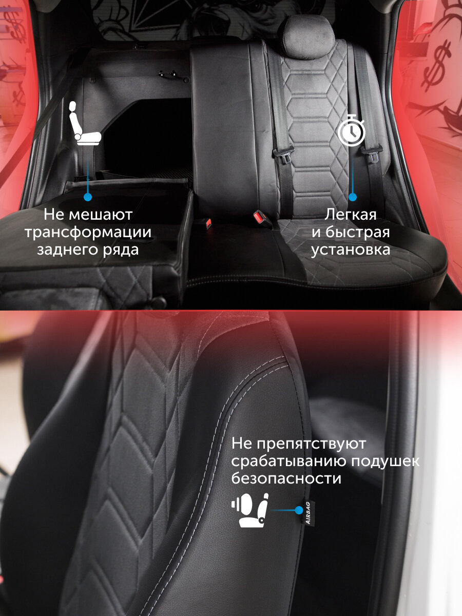 Airline Чехлы для Лада Largus 5 мест (12-), "Оптима", задн.спин. 1/3, жаккард черн