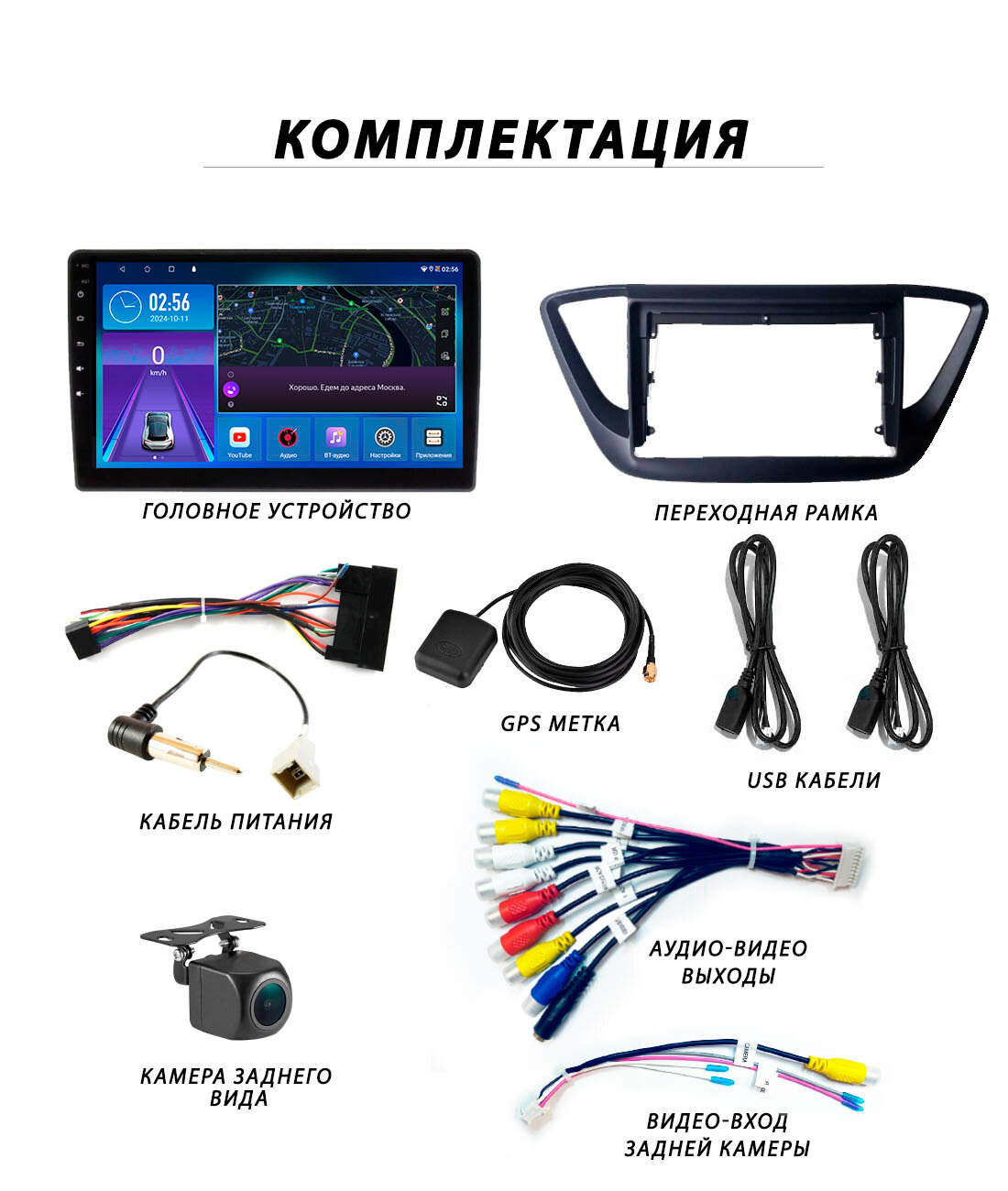 | Подробная комплектация | Головное устройство, переходная рамка 9 дюйм, кабель питания под авто, кабель usb - 2шт, gps-метка, коса rca (аудио-видео выходы), видео-вход камеры заднего вида, камера заднего вида (в подарок). |