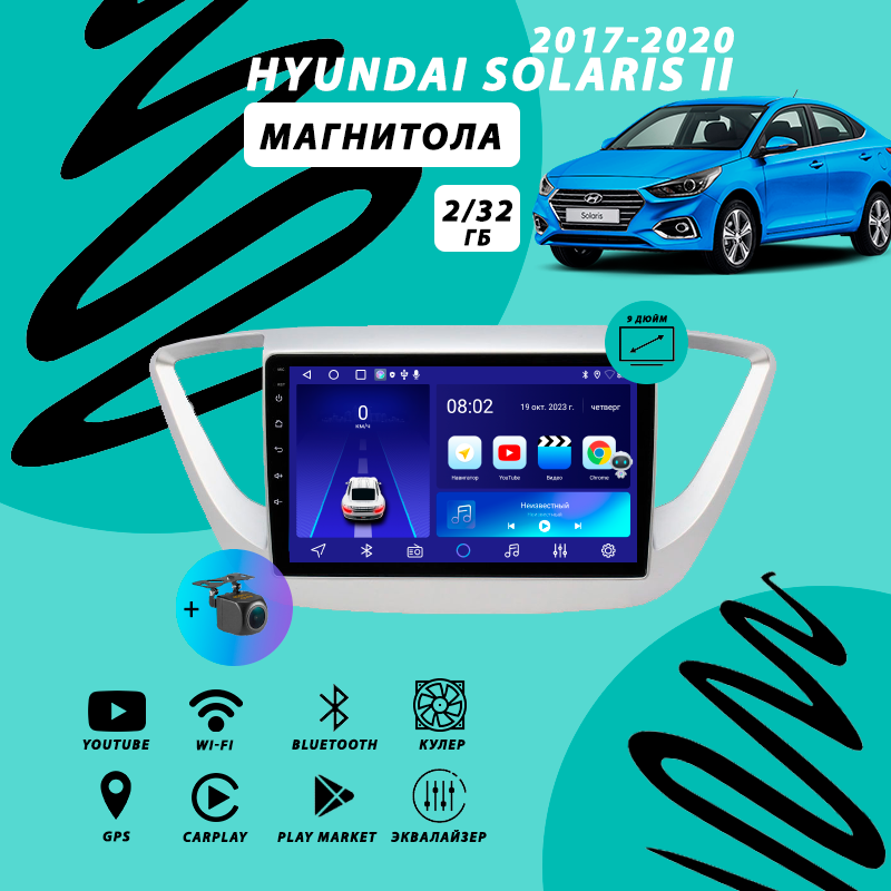 Купить Магнитола Hyundai Solaris 2 (2017-2020) 2Гб+32Гб/Android/Carplay/кулер/Wi-Fi/Bluetooth/2din/штатная магнитола