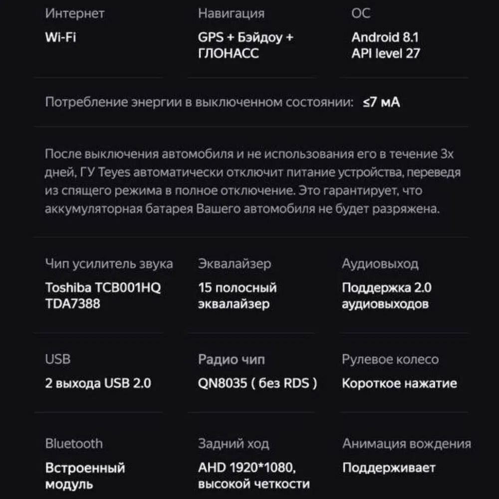 | Дополнительная информация | Тип матрицы экрана: IPS, Усилитель: EnChip AXPA17388 4x45W, Тип сенсорного экрана: Емкостный. |
