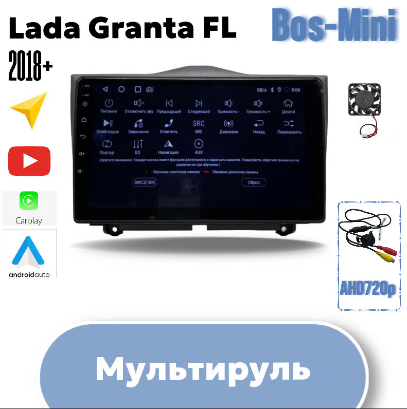 Купить Штатная магнитола Bos-Mini для Lada Granta FL 2018+ , 4 ядра, 4+64 Гб, Android Auto, Carplay, GPS,
