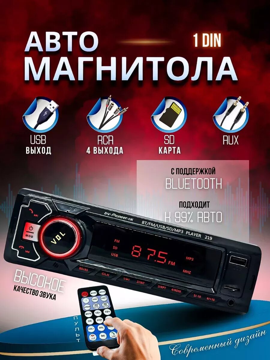 Автомагнитола Pioneer ok 219/ Магнитола 1 Din с Bluetooth AUX/