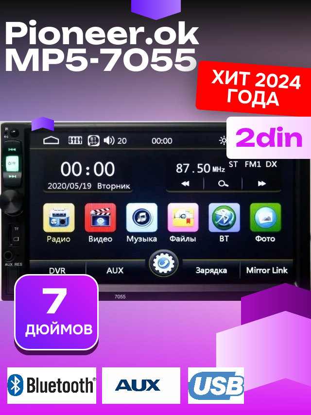 Автомагнитола Pioneer MP5-7055 2Din с сенсорным экраном 7 дюймов и Bluetooth интересное: