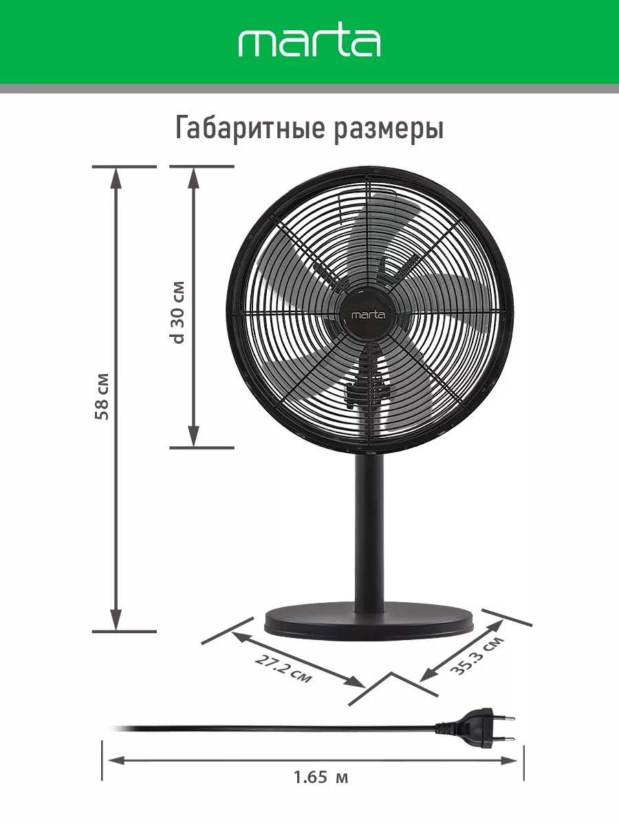 Настольный вентилятор MARTA MT-FN2553 черный