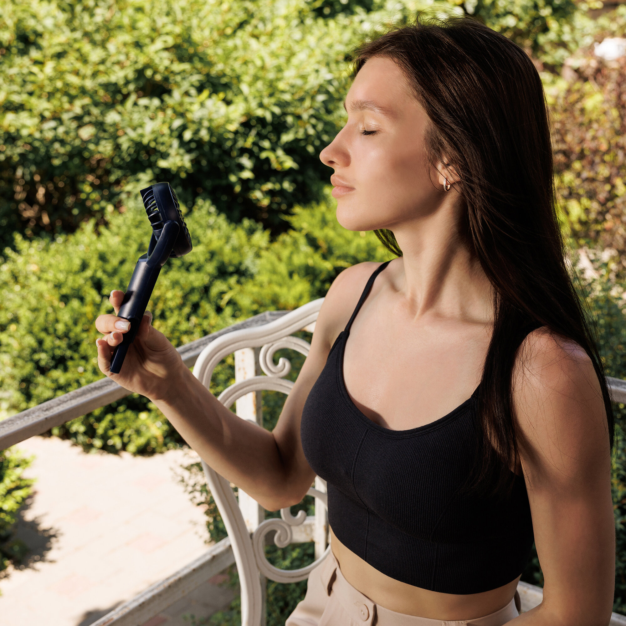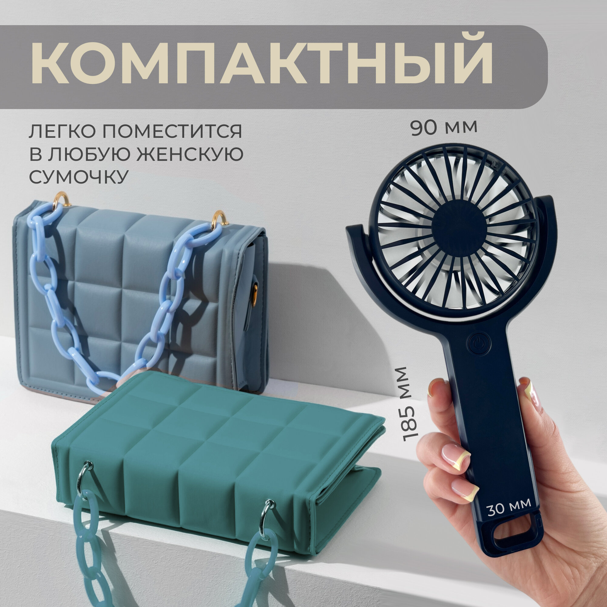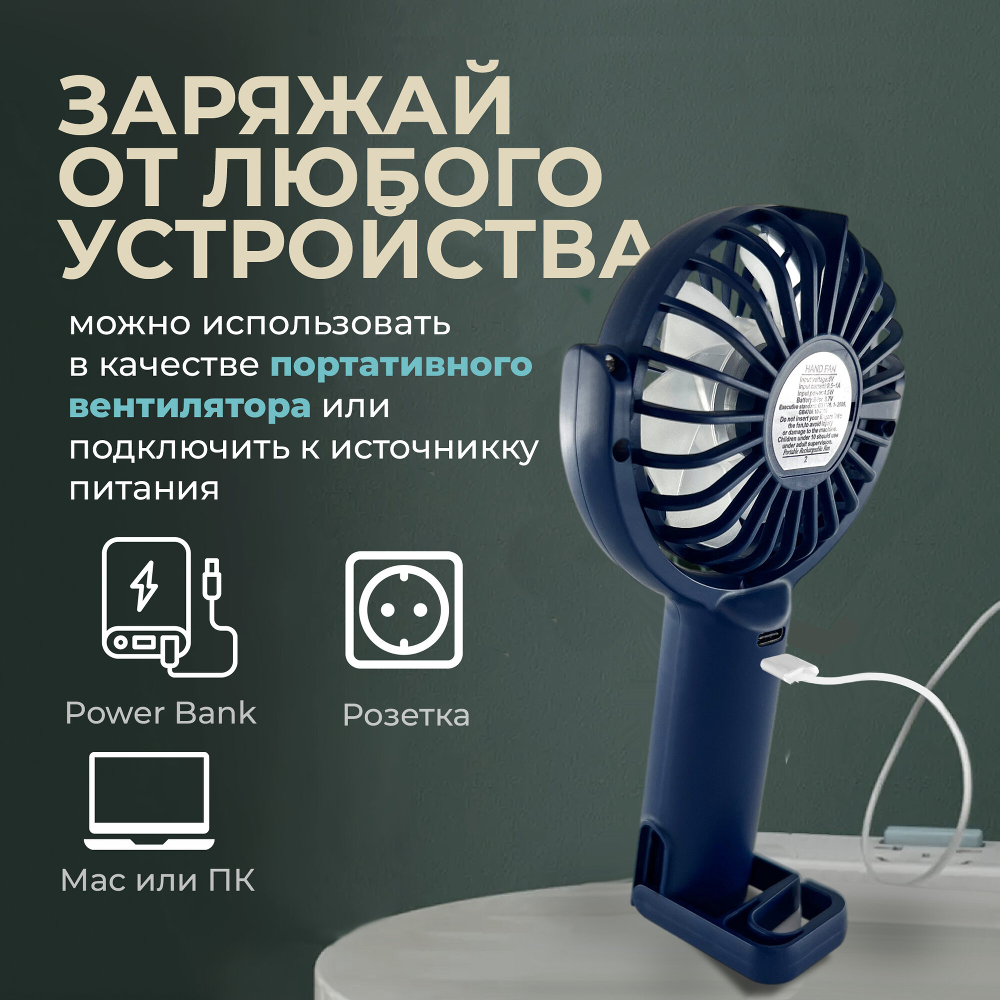 Купить Вентилятор, 5 режимов, поворотный, с крючком-подставкой, синий // вентилятор ручной, вентилятор настольный
