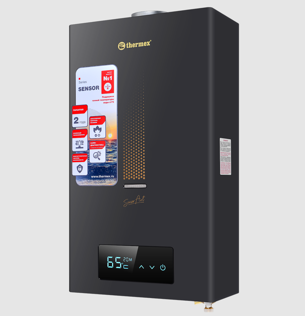 Водонагреватель газовый проточный Thermex SENSOR ART - 20 кВт (цвет черный)
