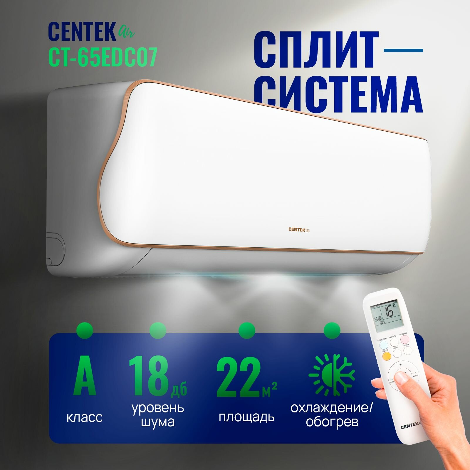 СохранитьСплит-система CENTEK CT-65EDC07, инверторная, кондиционер для помещения до 22 кв. м. интересное: