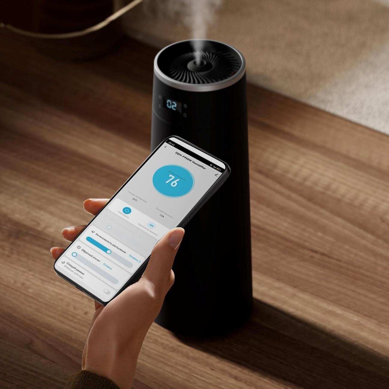 | Особенности | гигростат / дисплей / индикация работы / регулировка скорости вентилятора/интенсивности испарения / таймер / увлажнение воздуха / управление со смартфона |