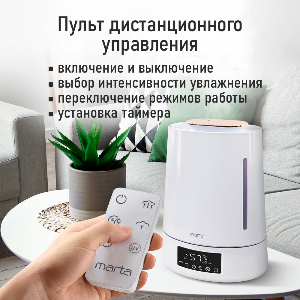 Увлажнитель воздуха ультразвуковой MARTA MT-HF4701D верхний залив антивирусная УФ - лампа функция теплый пар белый жемчуг
