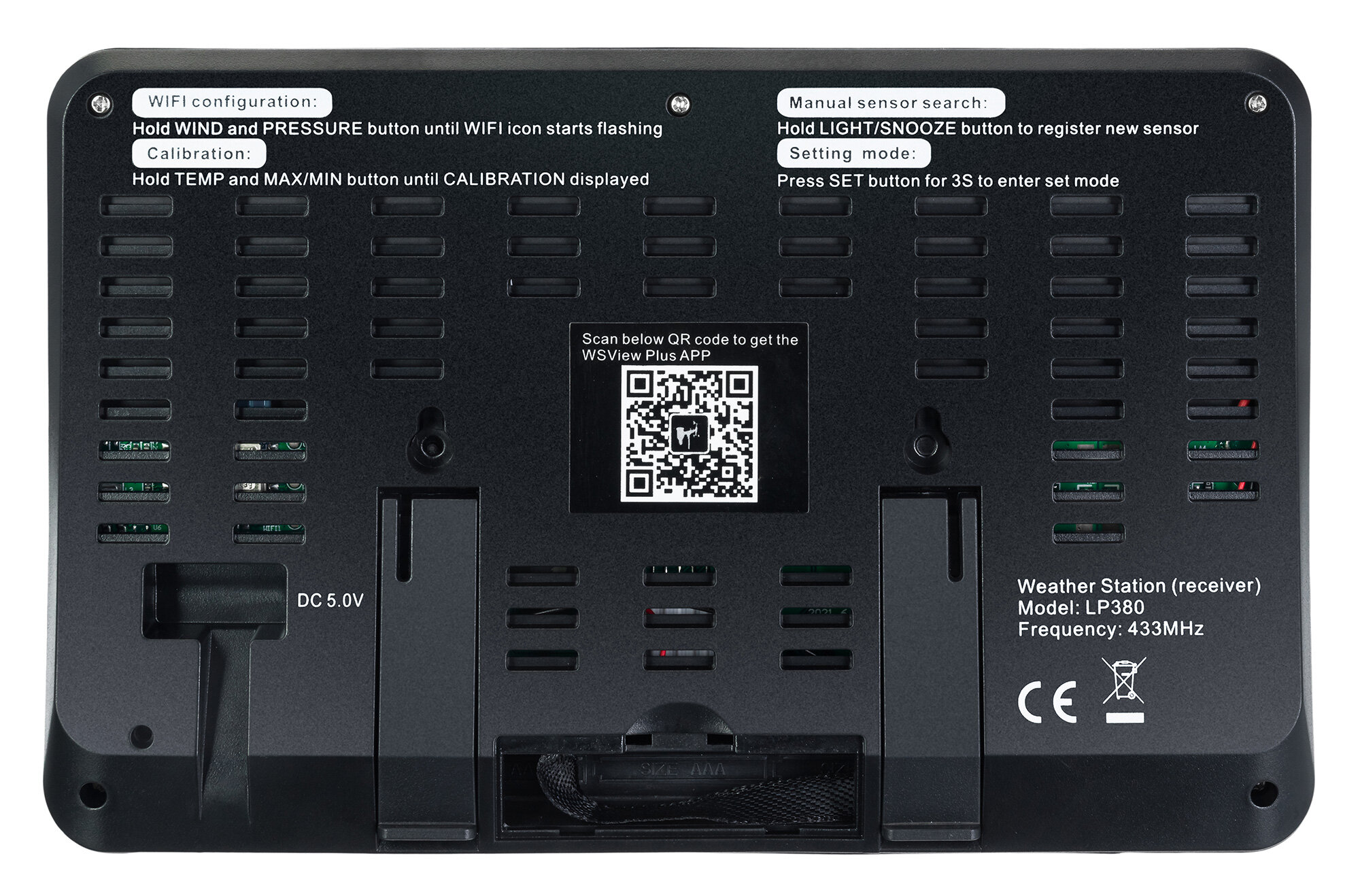 | Дополнительная информация | Wi-Fi стандарта 802.11 b/g/n, частота 2,4 ГГц, синхронизация с Time Server, с погодными серверами Weather Underground и Weather Cloud, точка росы, тепловой индекс, предупреждение об обледенении, UV-индекс (0–15), уровень освещенности (0–200 клк), солнечная панель |