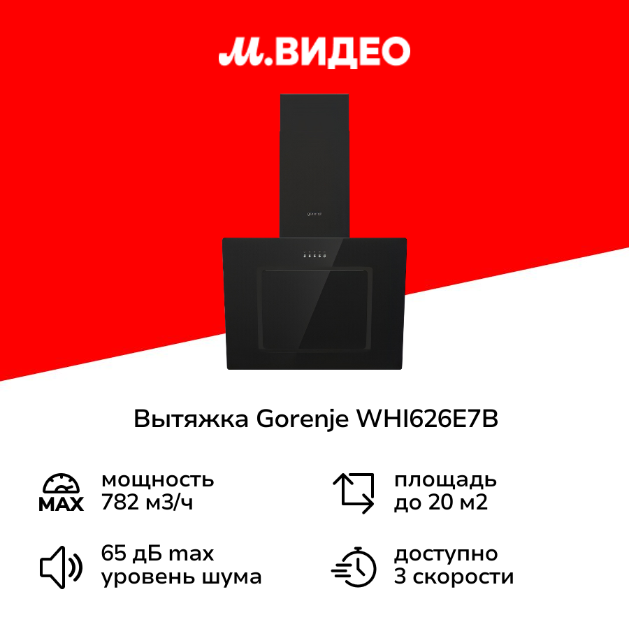 Купить Настенная вытяжка Gorenje WHI626E7B, 60 см, светодиодная подсветка, периметрическое всасывание, черная