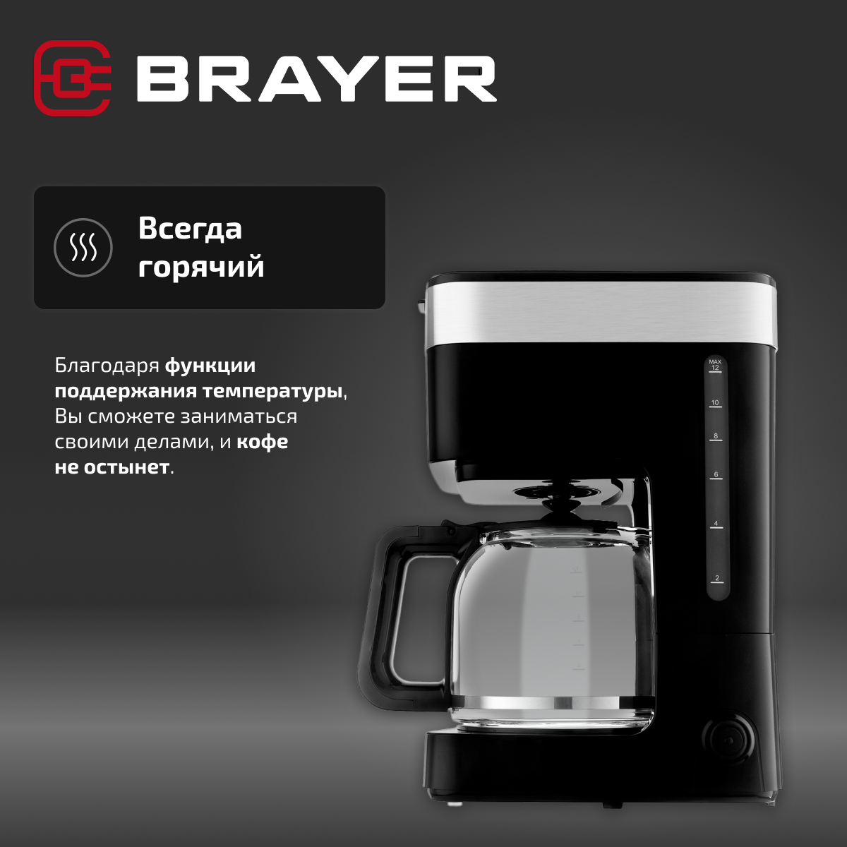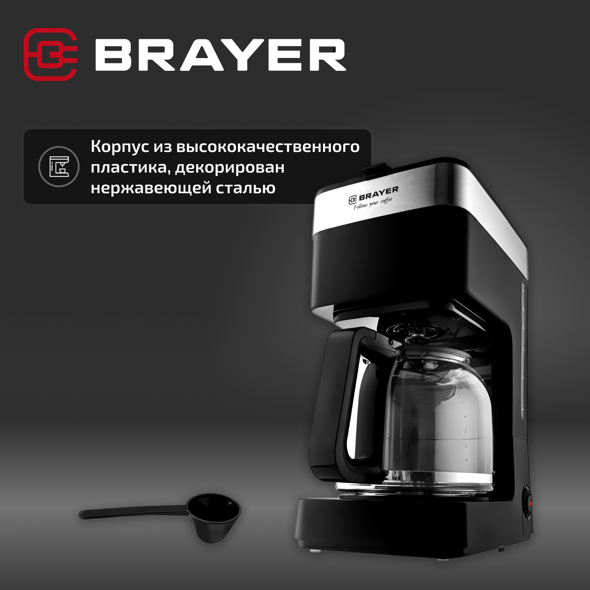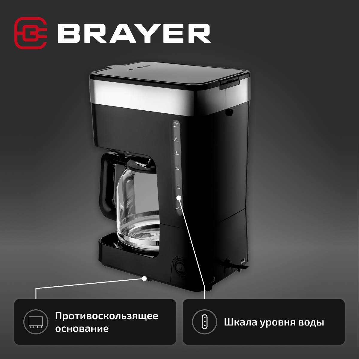 Купить Кофеварка капельная BRAYER BR1126, 900 Вт, 1.5 л, цвет черный