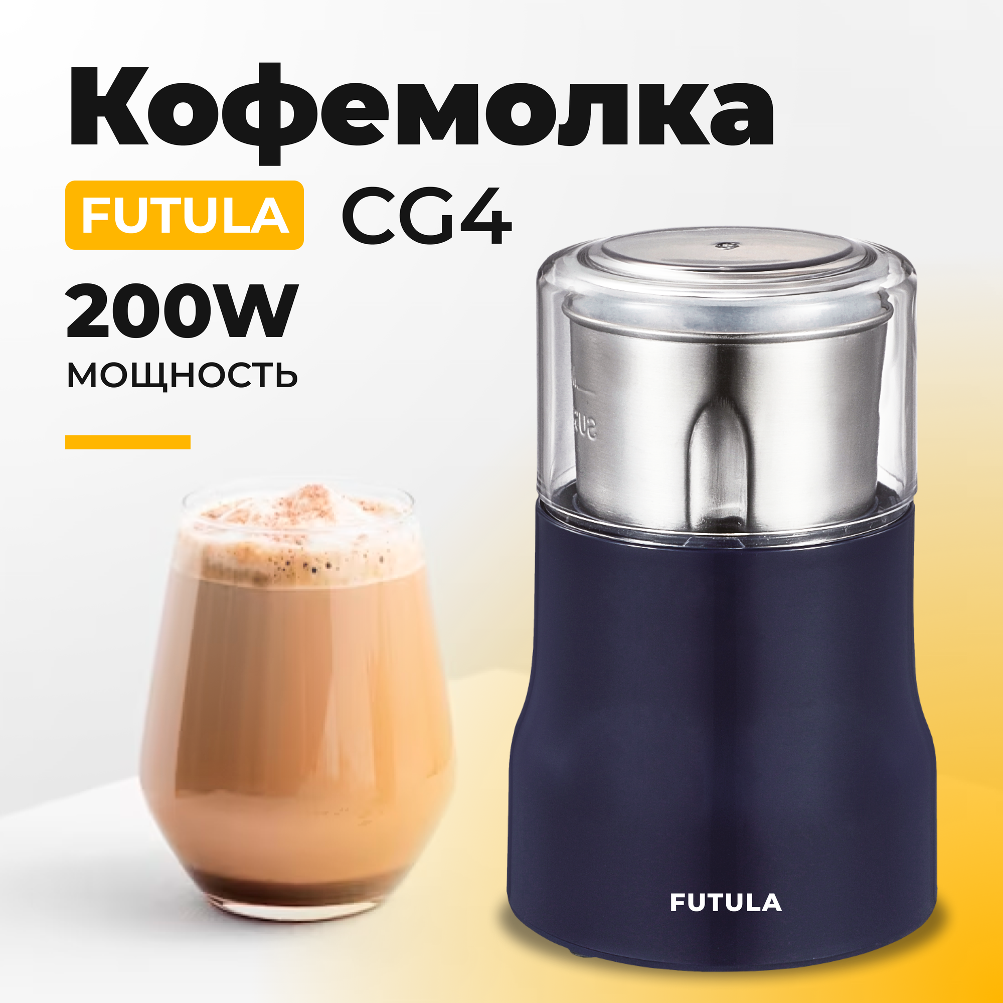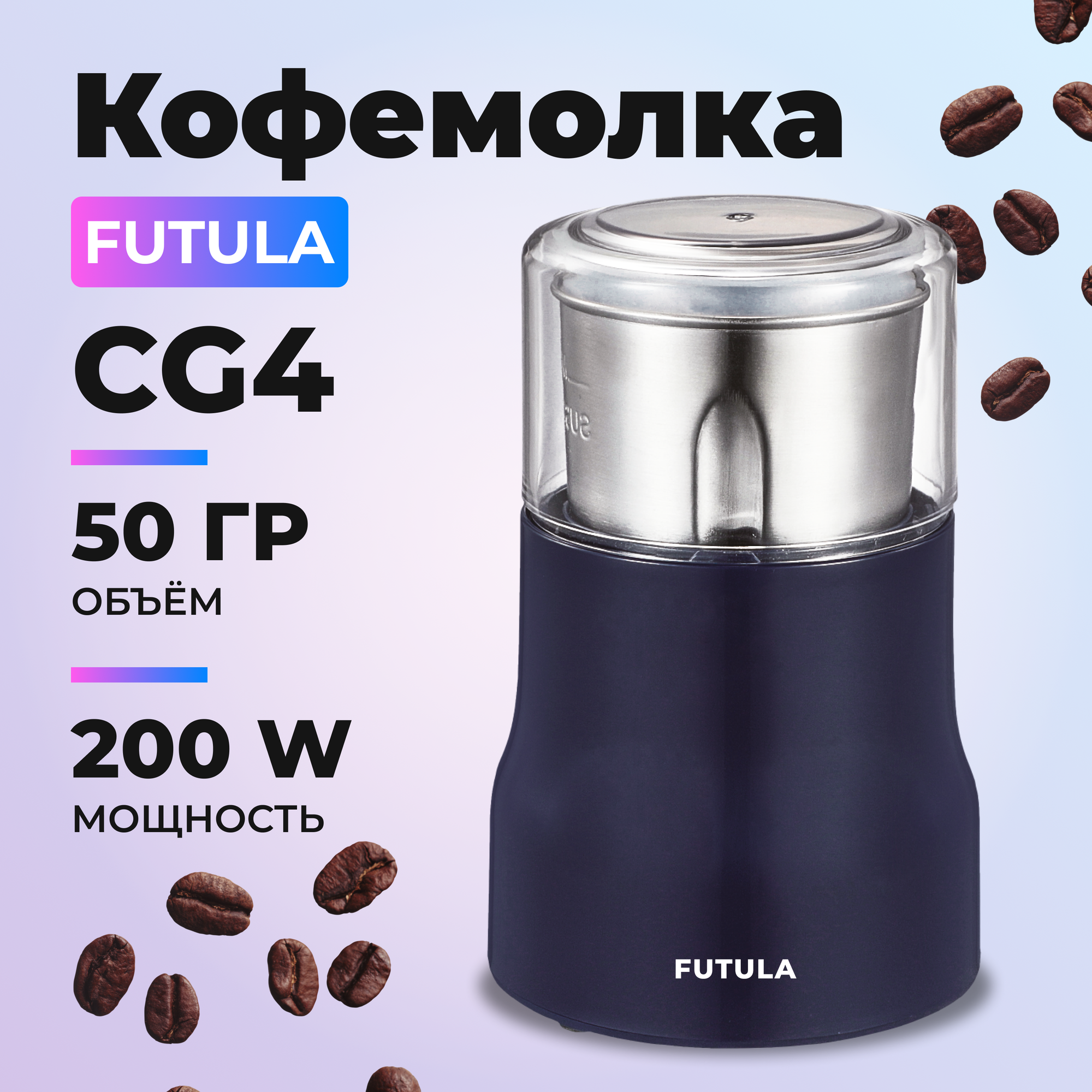 Кофемолка электрическая Futula CG4, ротационный нож, вместимость 50 г, 200Вт