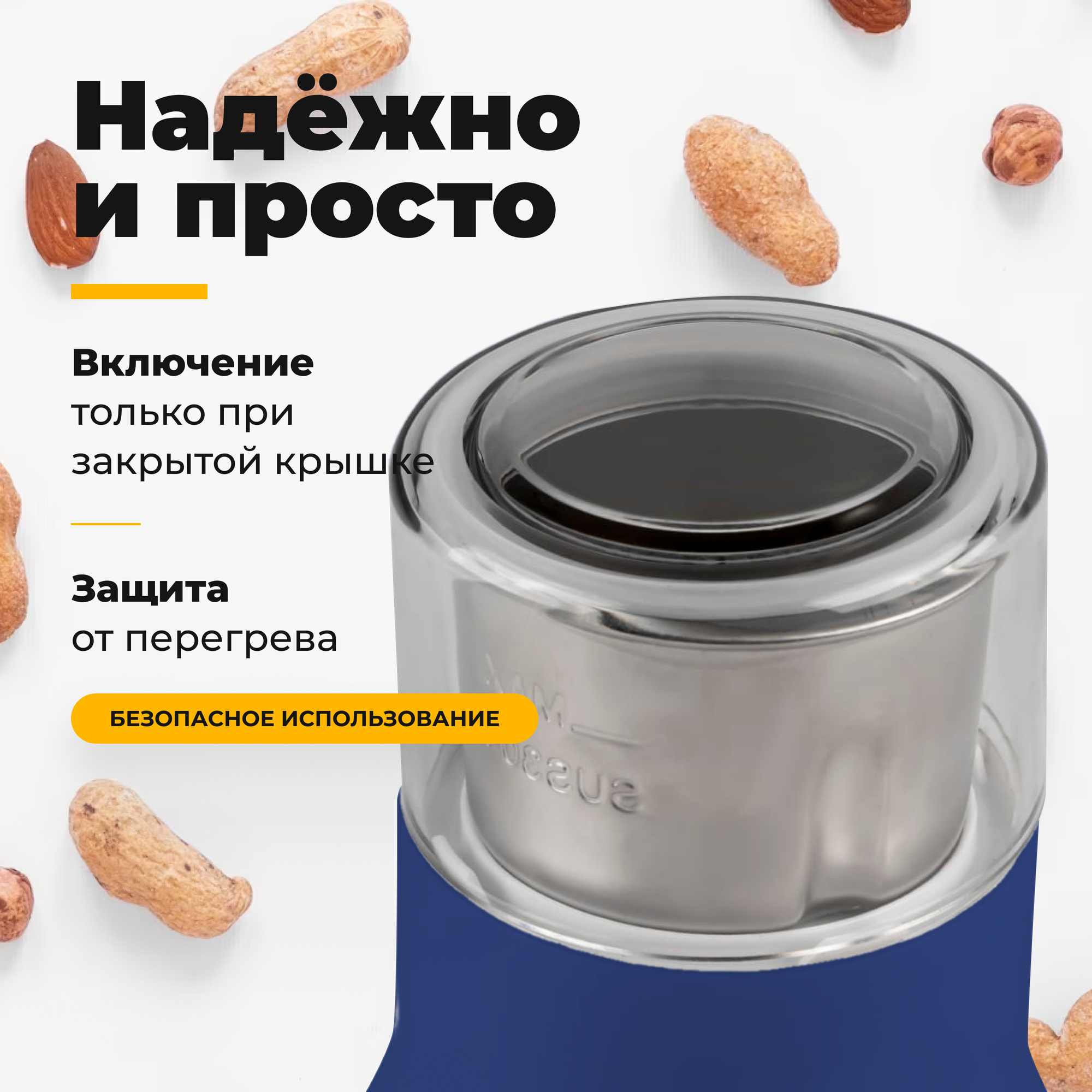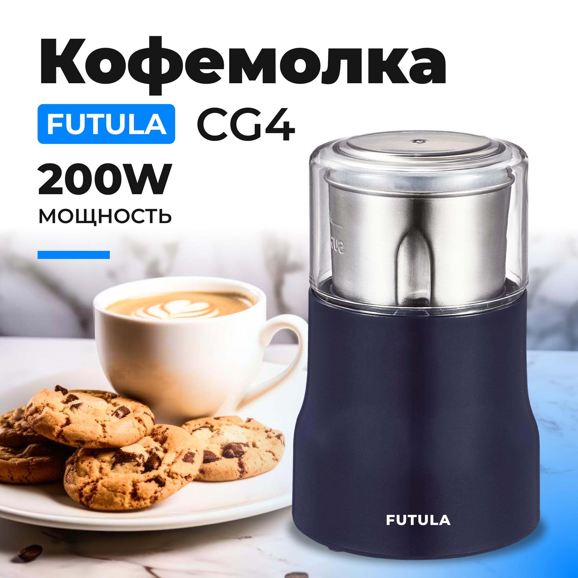 Кофемолка электрическая Futula CG4 синяя / измельчитель для кофейных зерен, круп, специй и орехов, 200 Вт интересное: