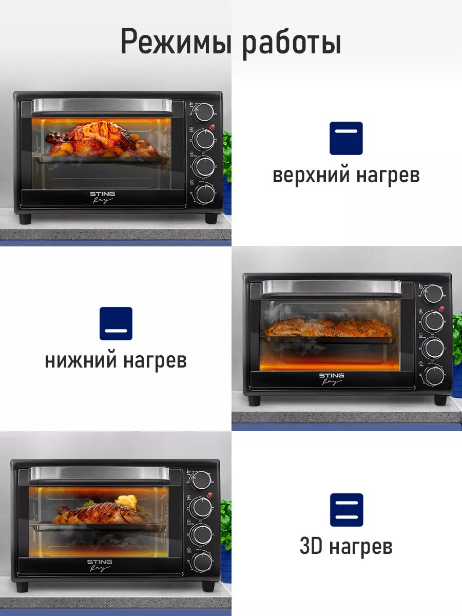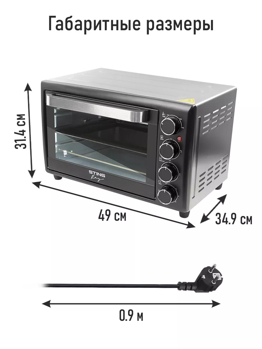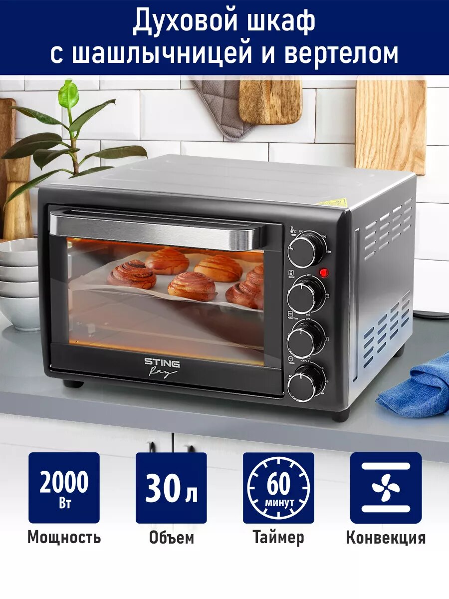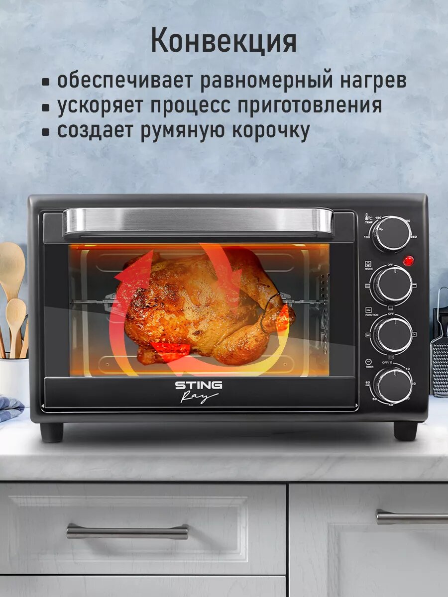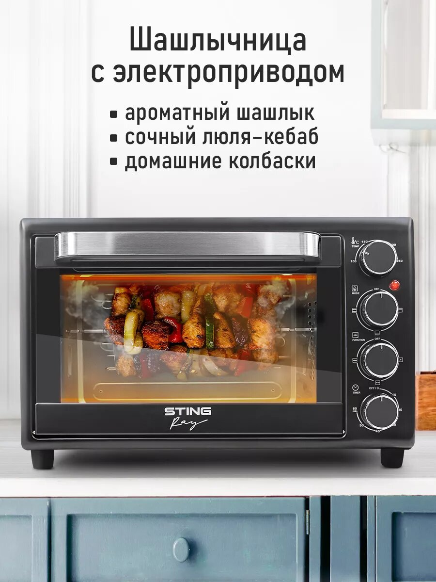 Духовка духовой шкаф мини-печь STINGRAY ST-EO103A 30 литров 12 режимов шашлычница вертел черный/сталь