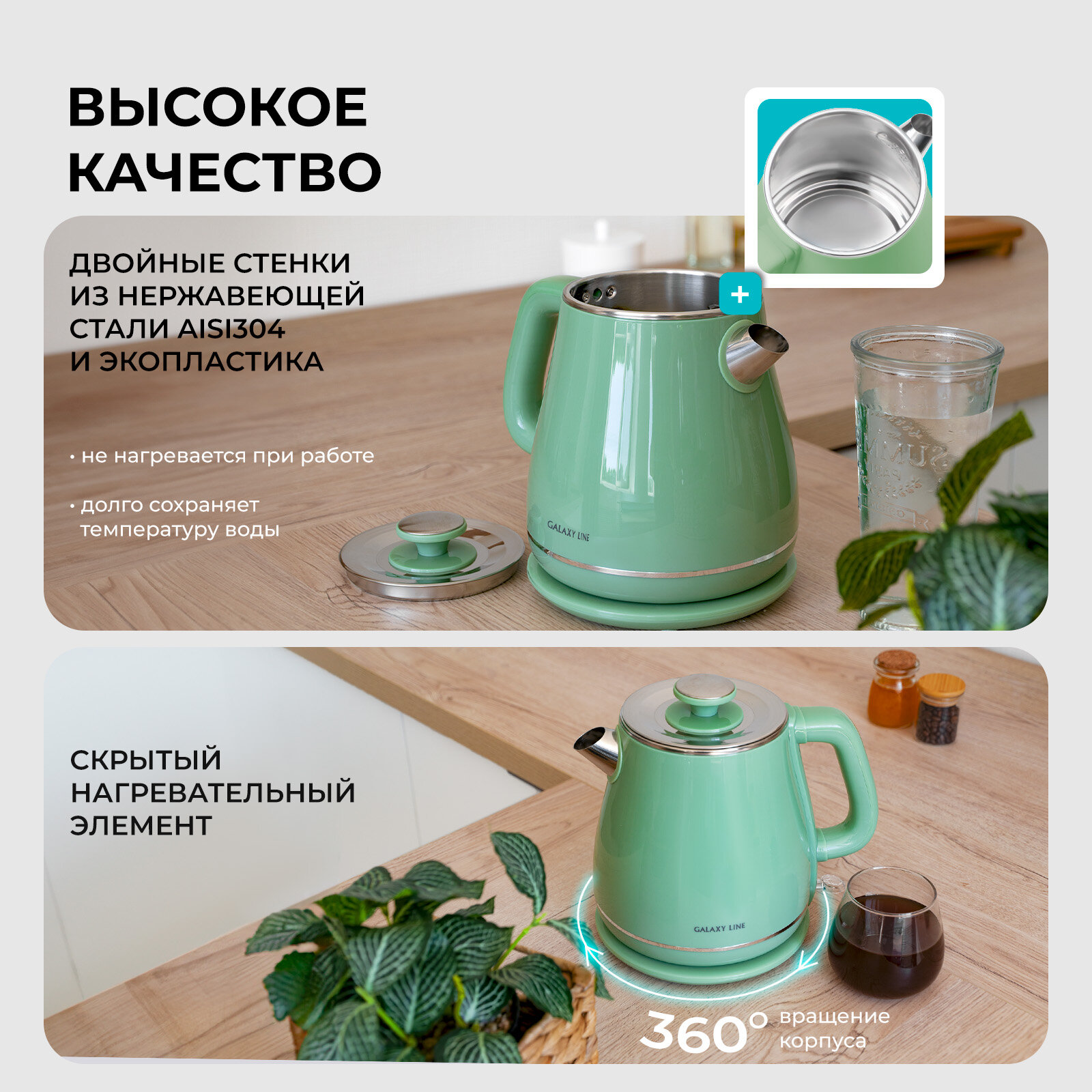 СохранитьЧайник электрический металлический GALAXY LINE GL0331 зеленый интересное: