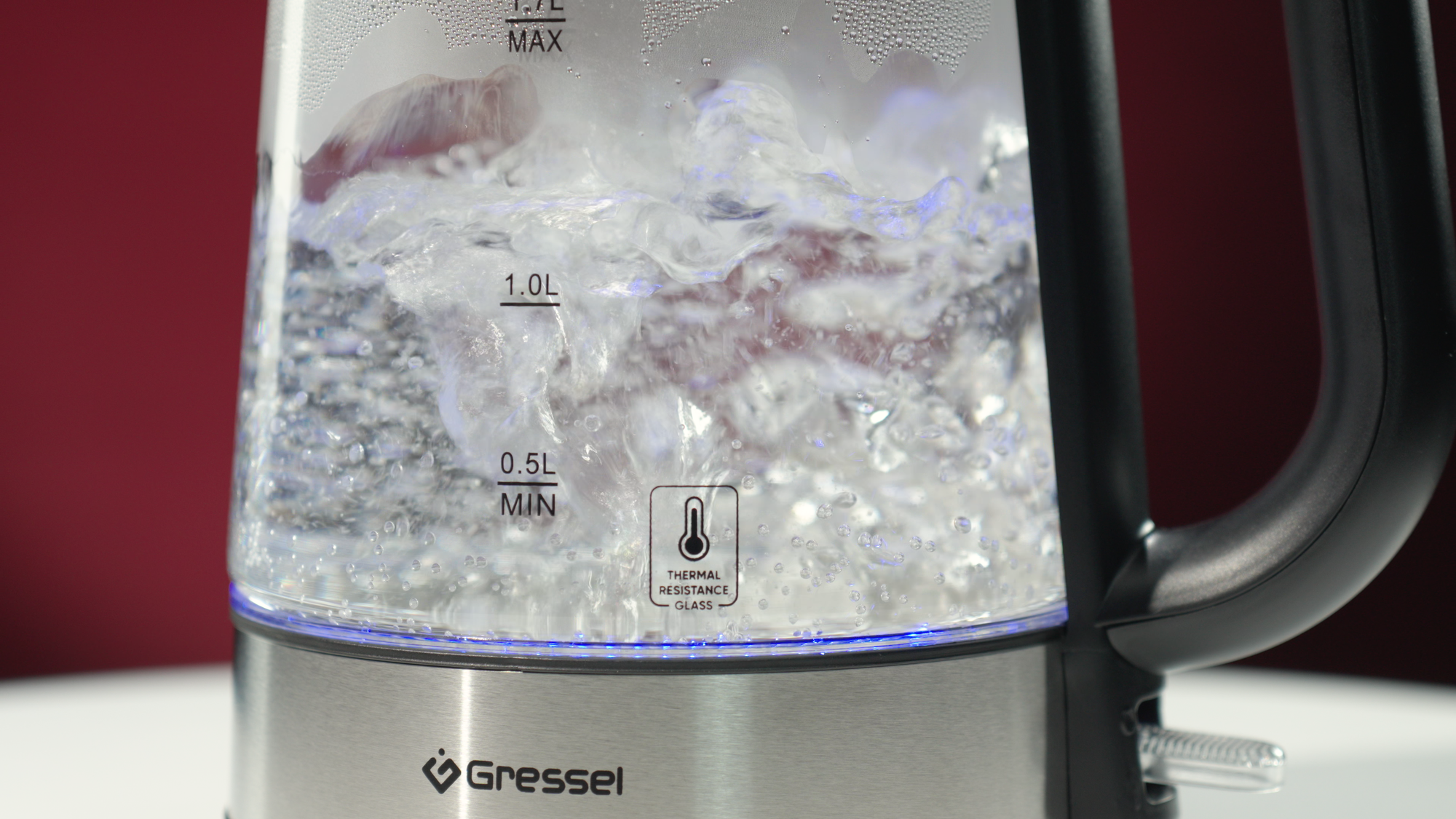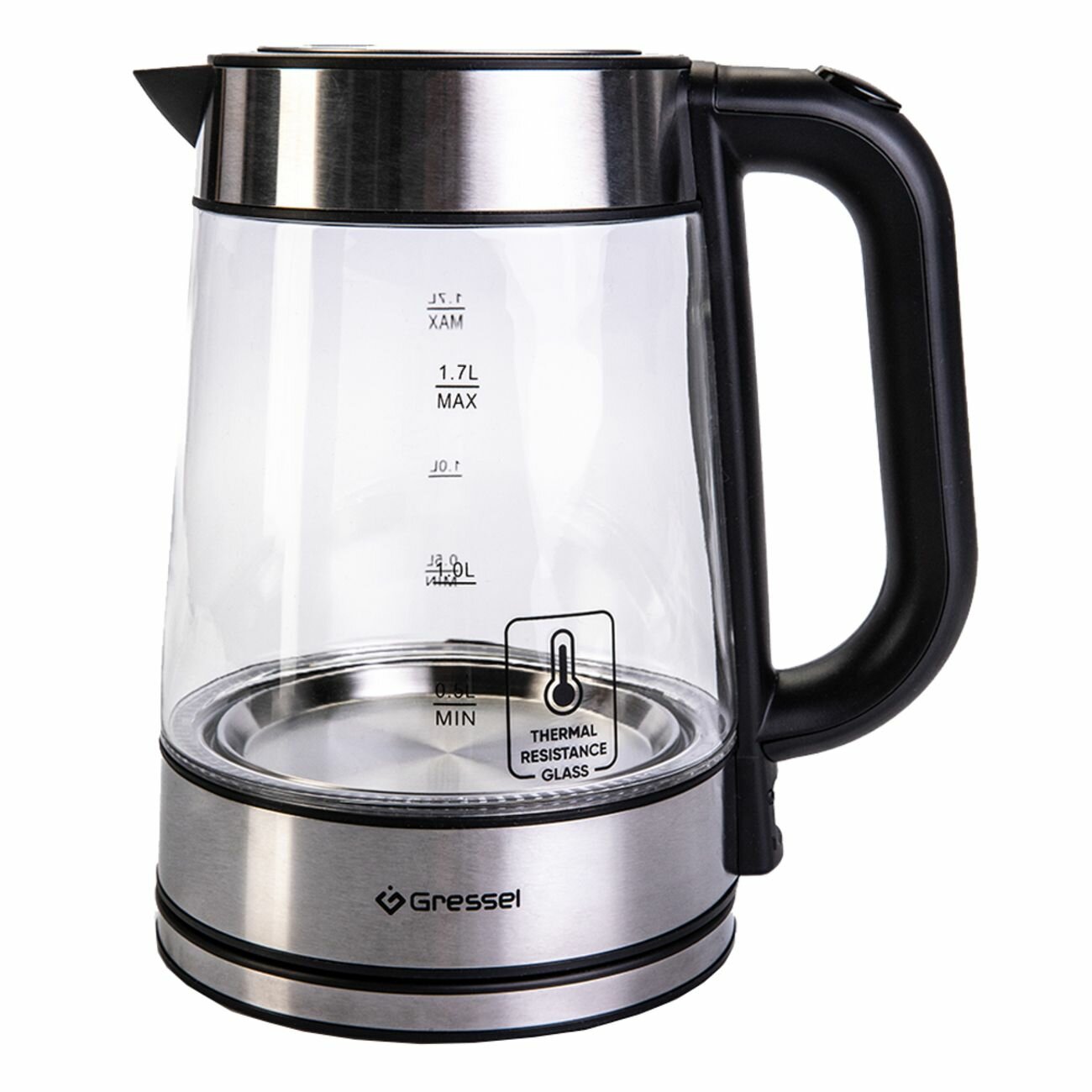 Чайник электрический Gressel GRK-1107 стеклянный с подсветкой, 1,7л, STRIX-контроллер