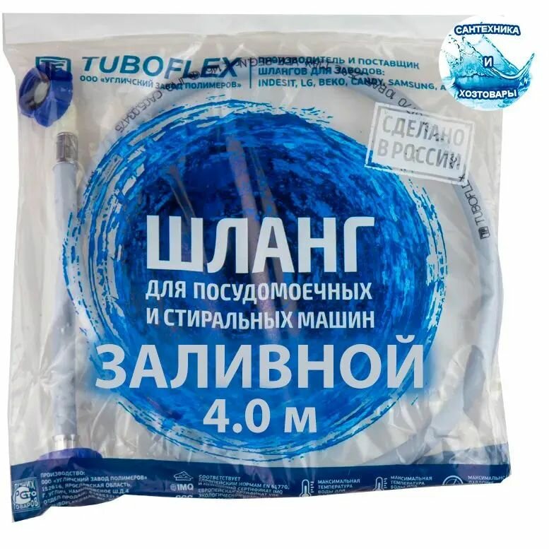 Шланг заливной 4 метра для стиральных и посудомоечных машин Tuboflex(г.Углич)