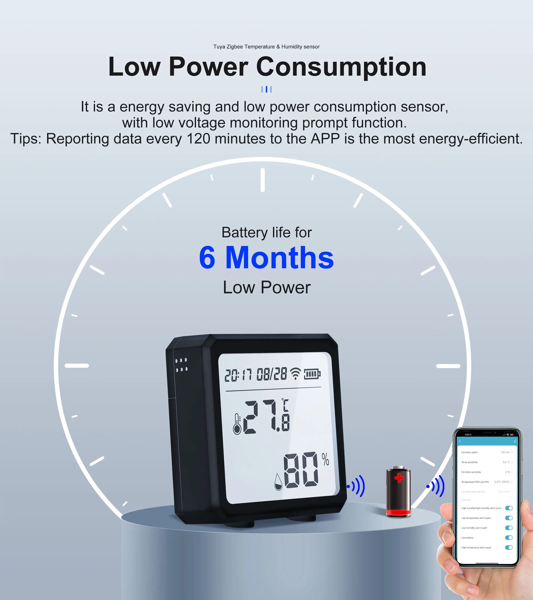Умный термометр GIRIER Tuya ZigBee, White Color интересное: