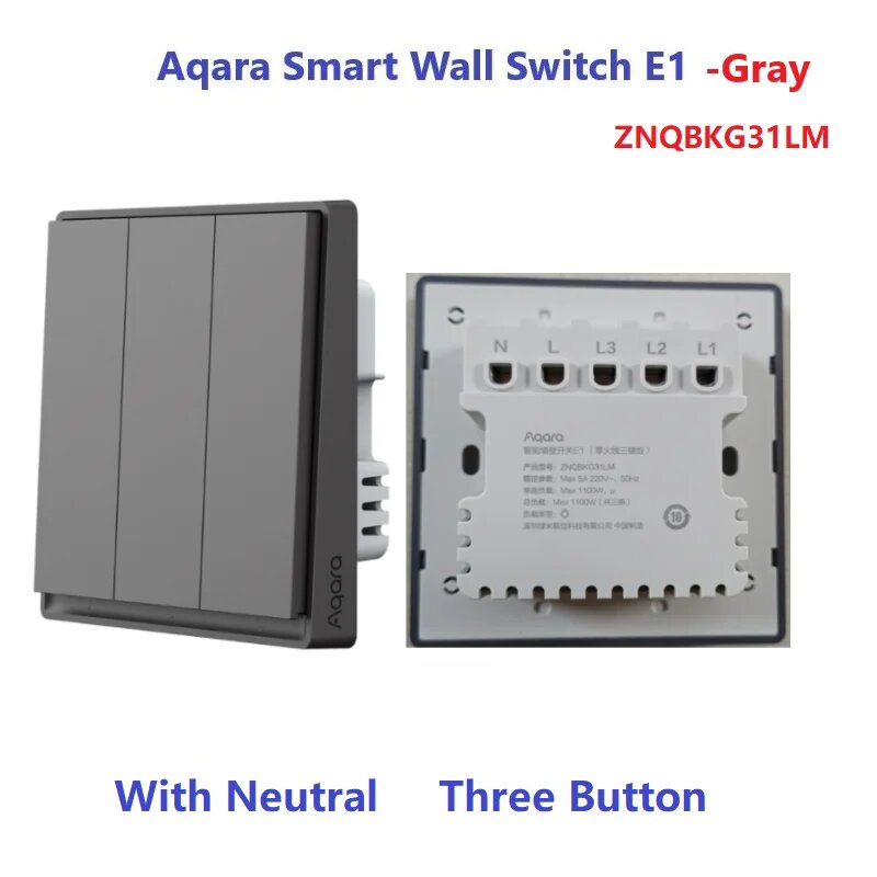 Умный настенный переключатель света Aqara E1 ZigBee 3,0, Gray Neutral 3 key интересное: