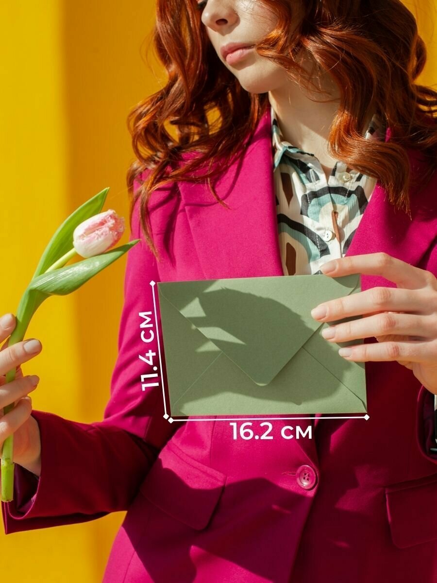 Хаки конверты бумажные для пригласительных, С6 114х162мм - набор 10 шт. цветные