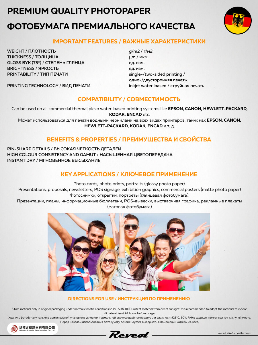 Фотобумага REVCOL A4, 230гр, 20л., Глянцевая