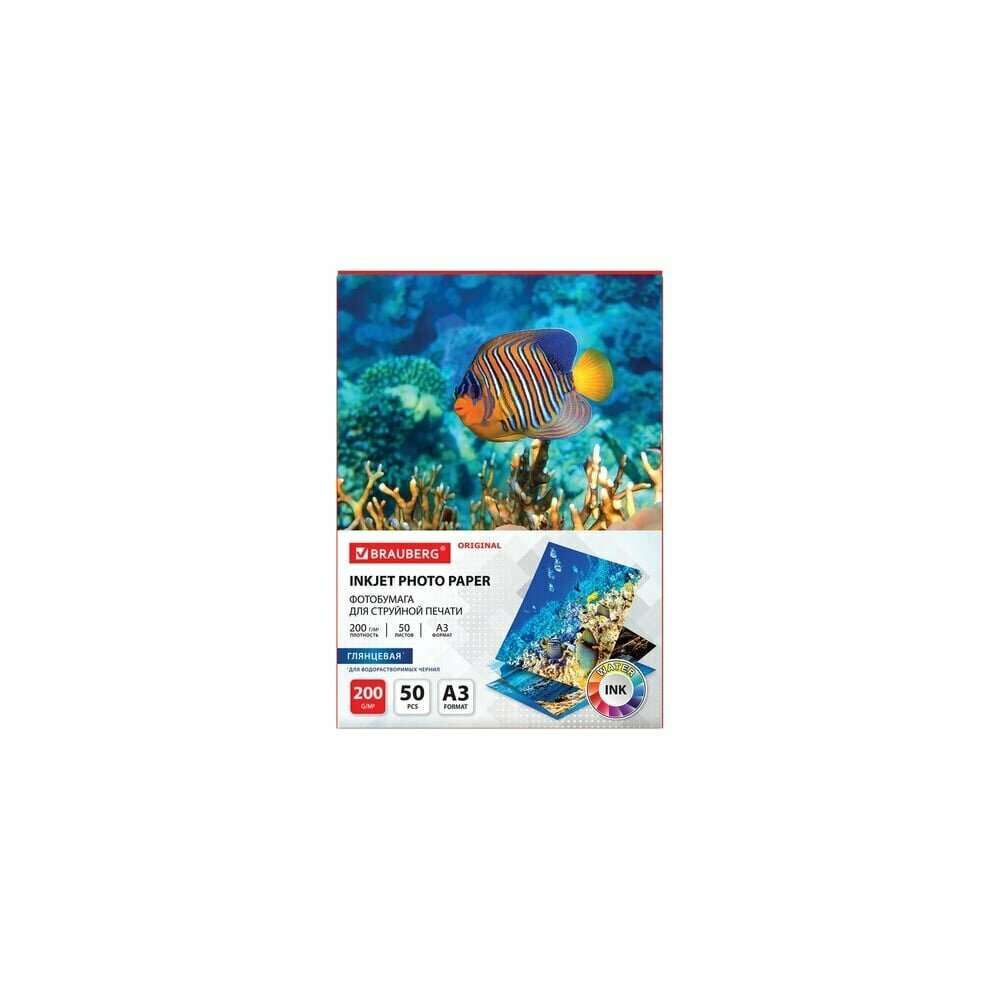 СохранитьФотобумага глянцевая Brauberg большого формата, А3, 200 г/м2, односторонняя, 50 листов, ORIGINAL, 363995 интересное: