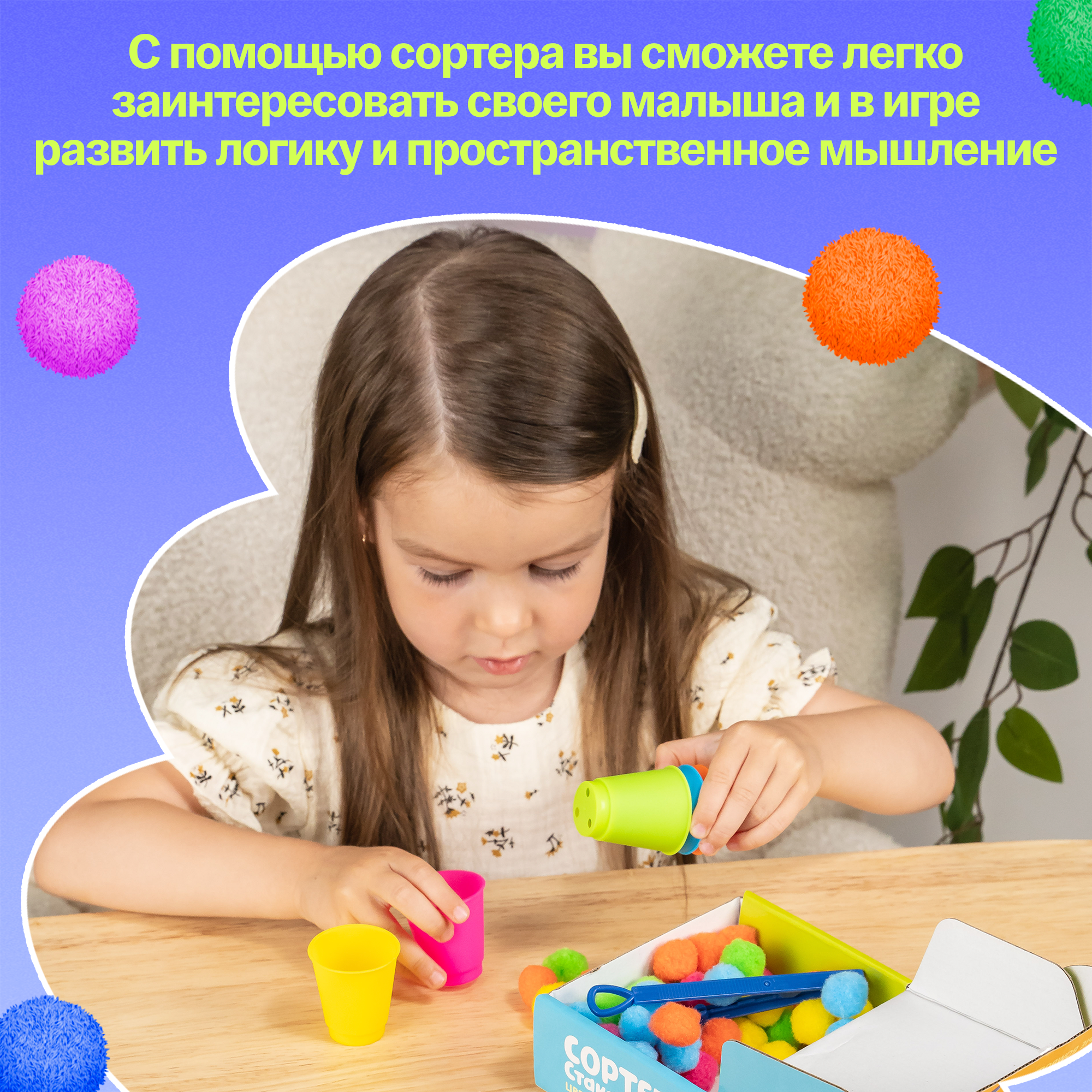 Сортер по цветам "Цветные Бомбошки" набор для сортировки, 5 стаканов IQ-ZABIAKA интересное: