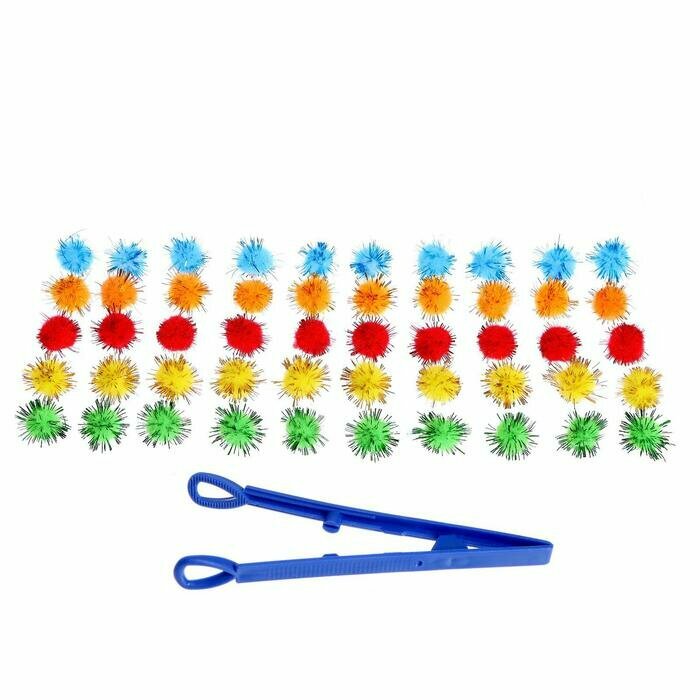 Набор для сортировки «Сортер-стаканчики: Цветные бомбошки» с пинцетом, 5 стаканов, 50 бомбошек, по методике Монтессори, для детей и малышей от 3 лет