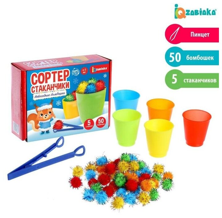 Сортер по цветам "Новогодние бомбочки" набор для сортировки, 5 стаканов, IQ-ZABIAKA интересное: