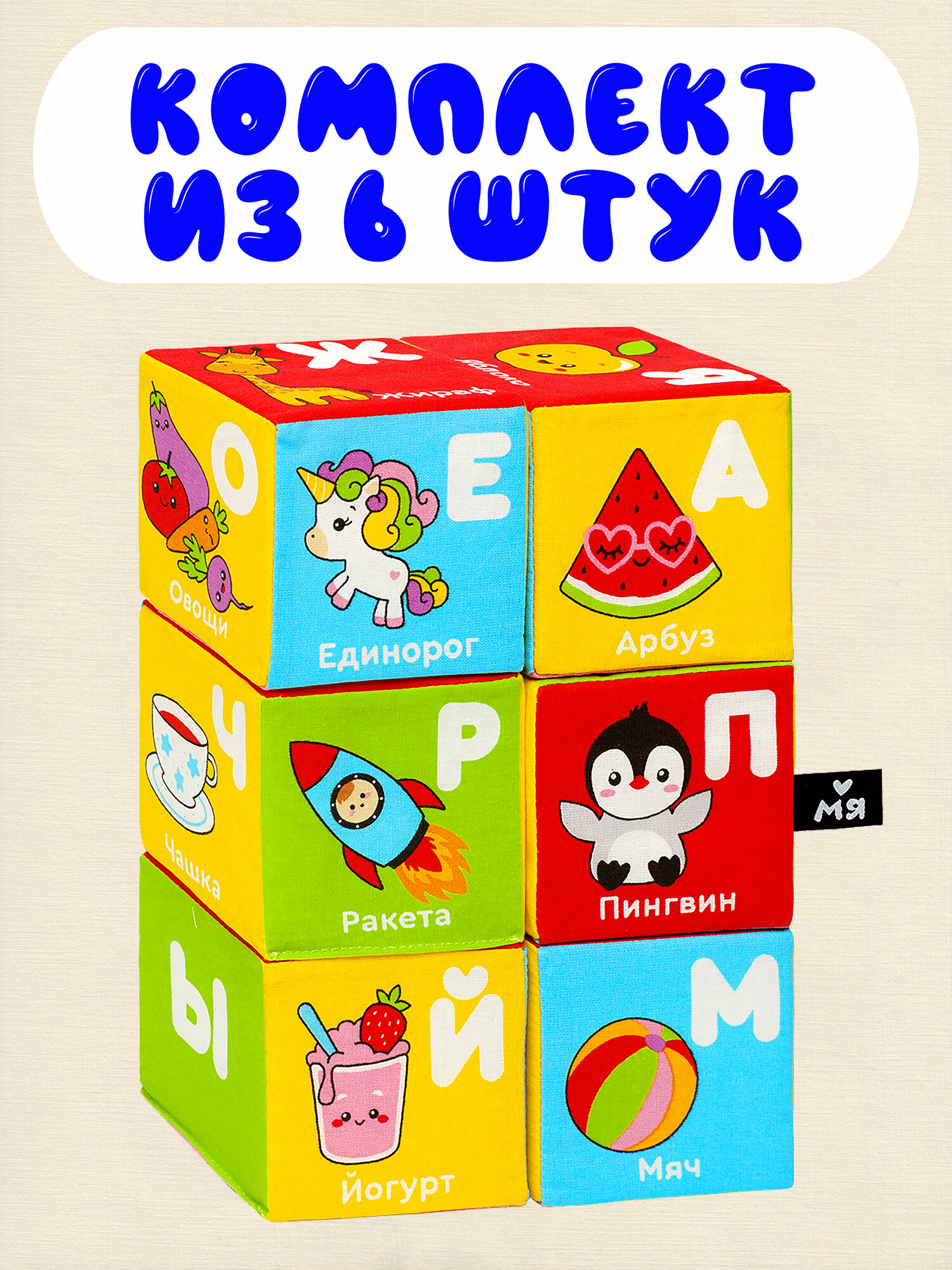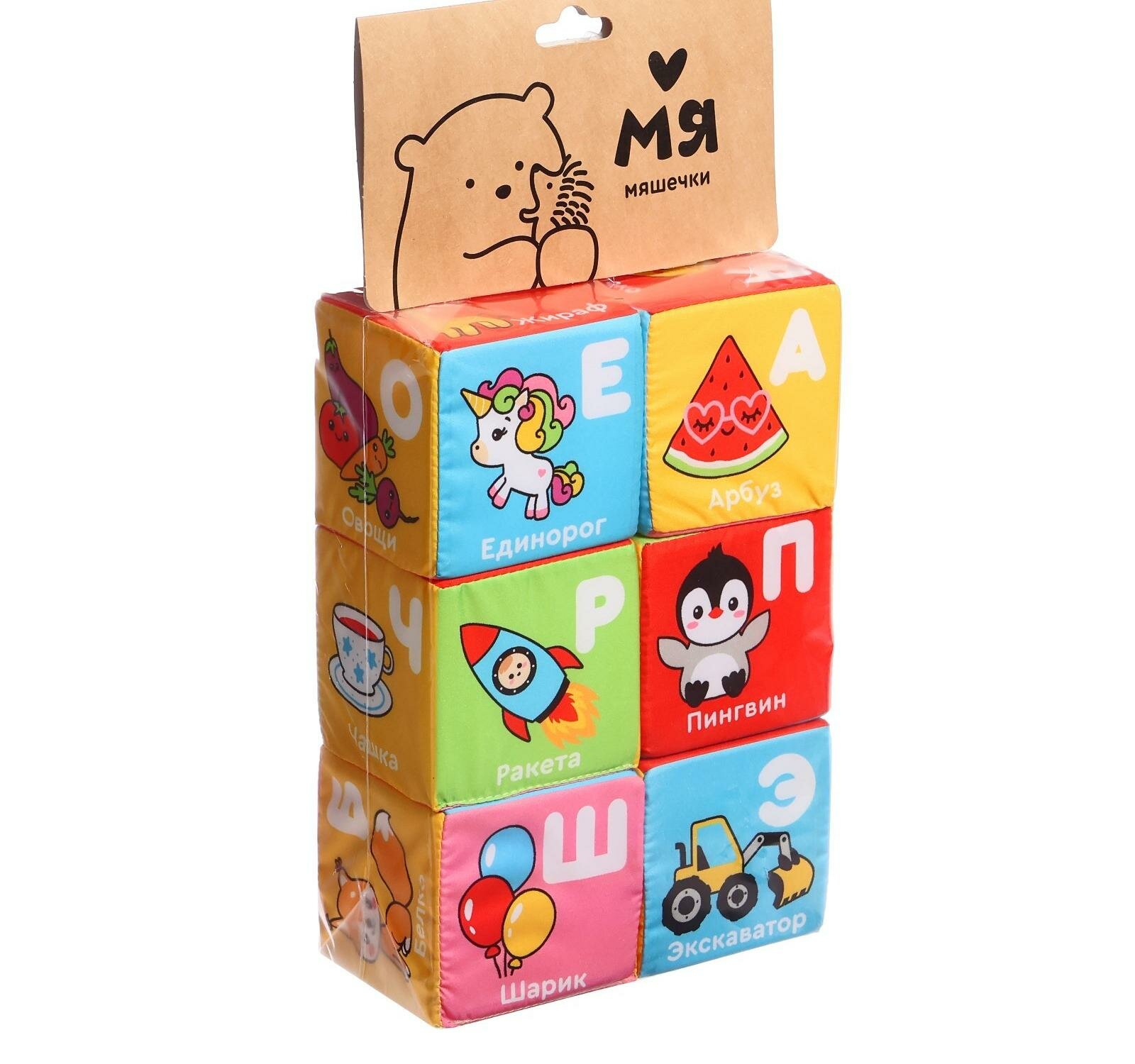 Мягкие кубики "Азбука с картинками " Мяшечки "